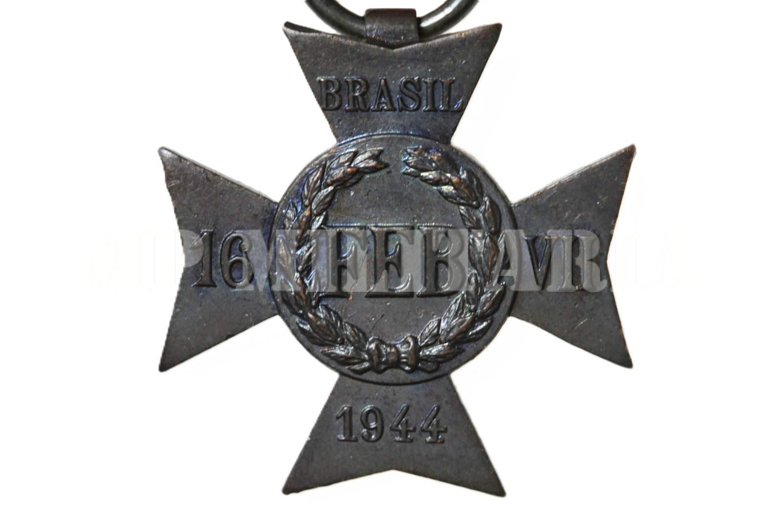 No centro da cruz a inscrição “FEB” (Força Expedicionária Brasileira), nos braços da cruz as inscrições “Brasil (acima) – 16 (esquerdo) – VII (direito) – 1944 (abaixo)”.;