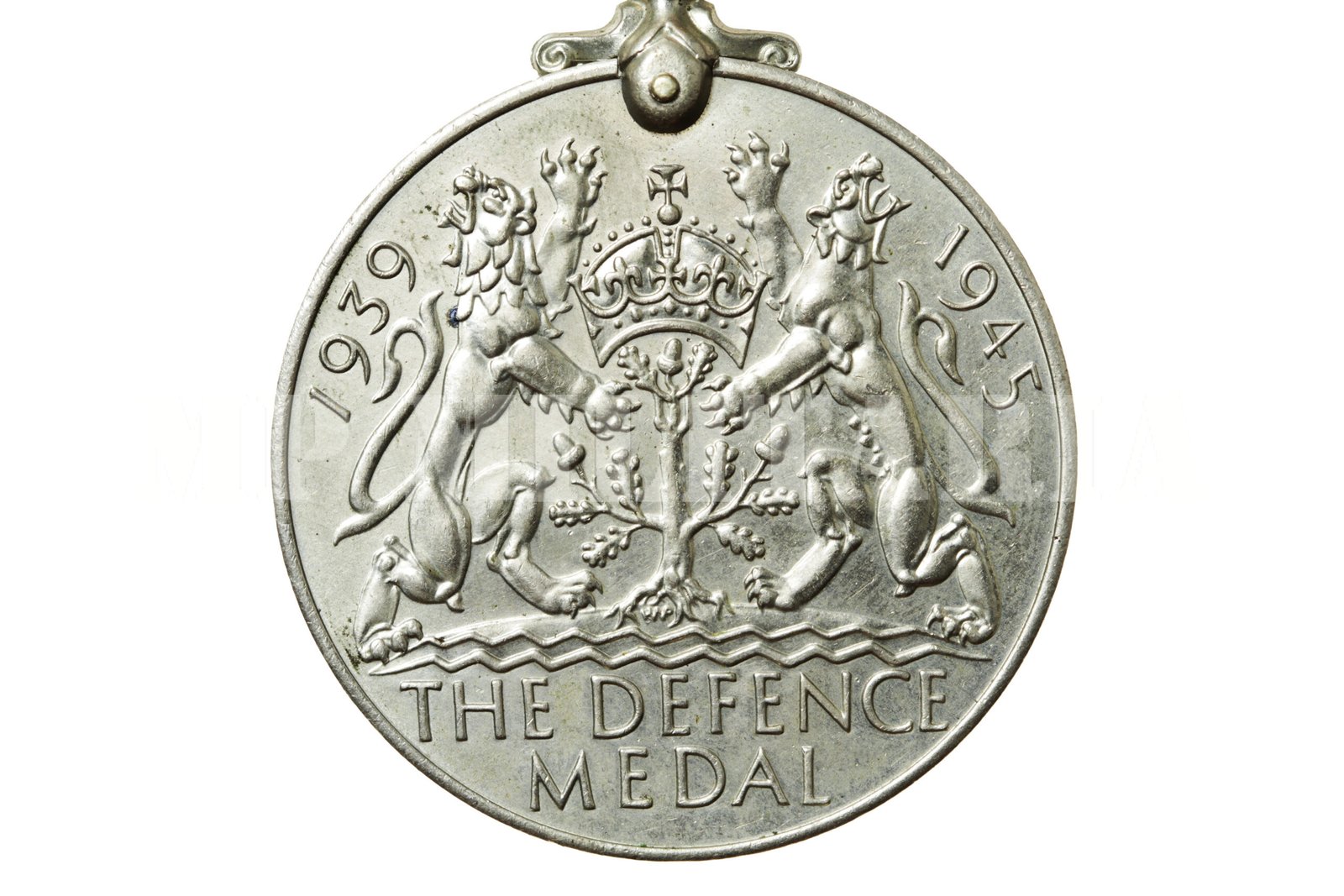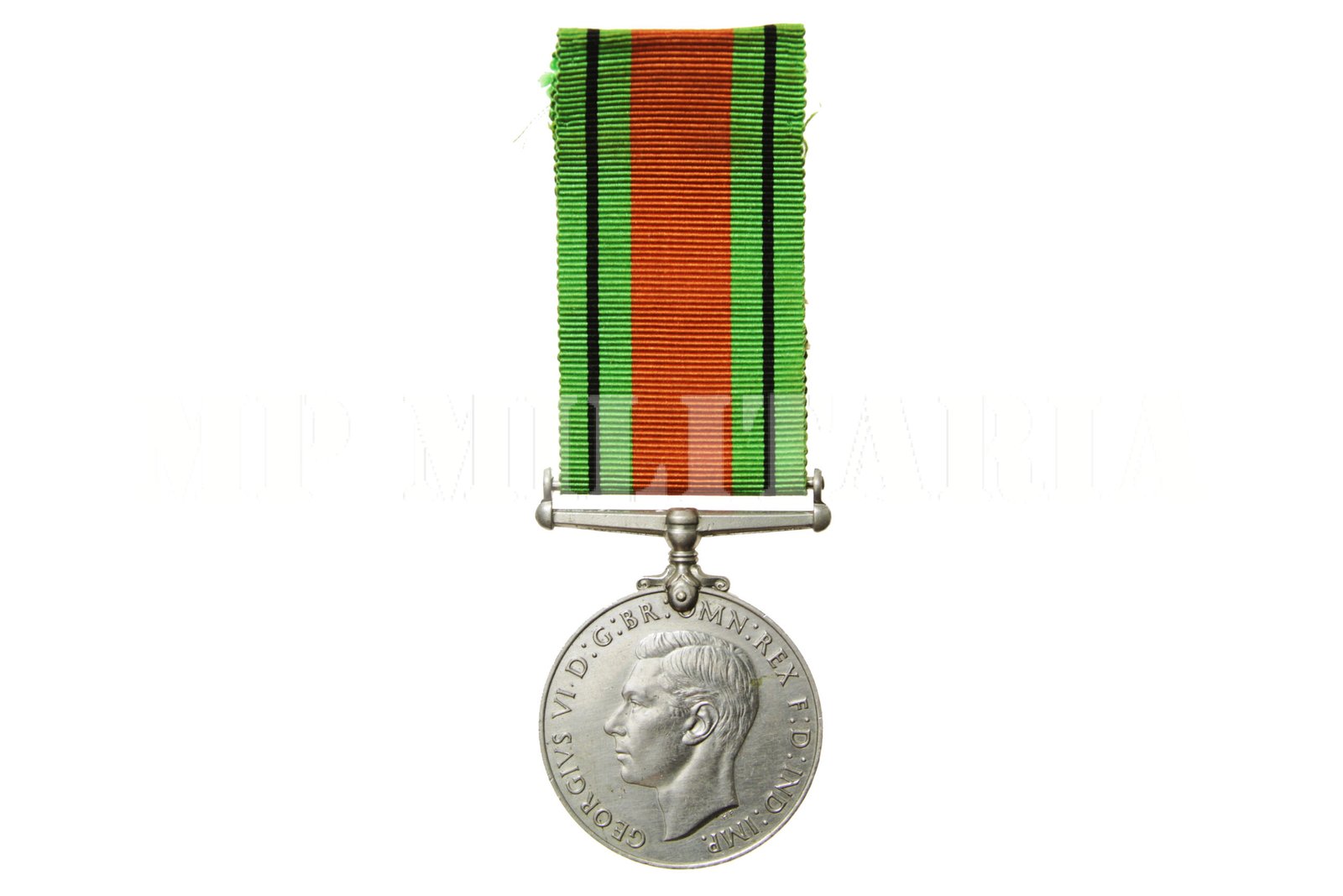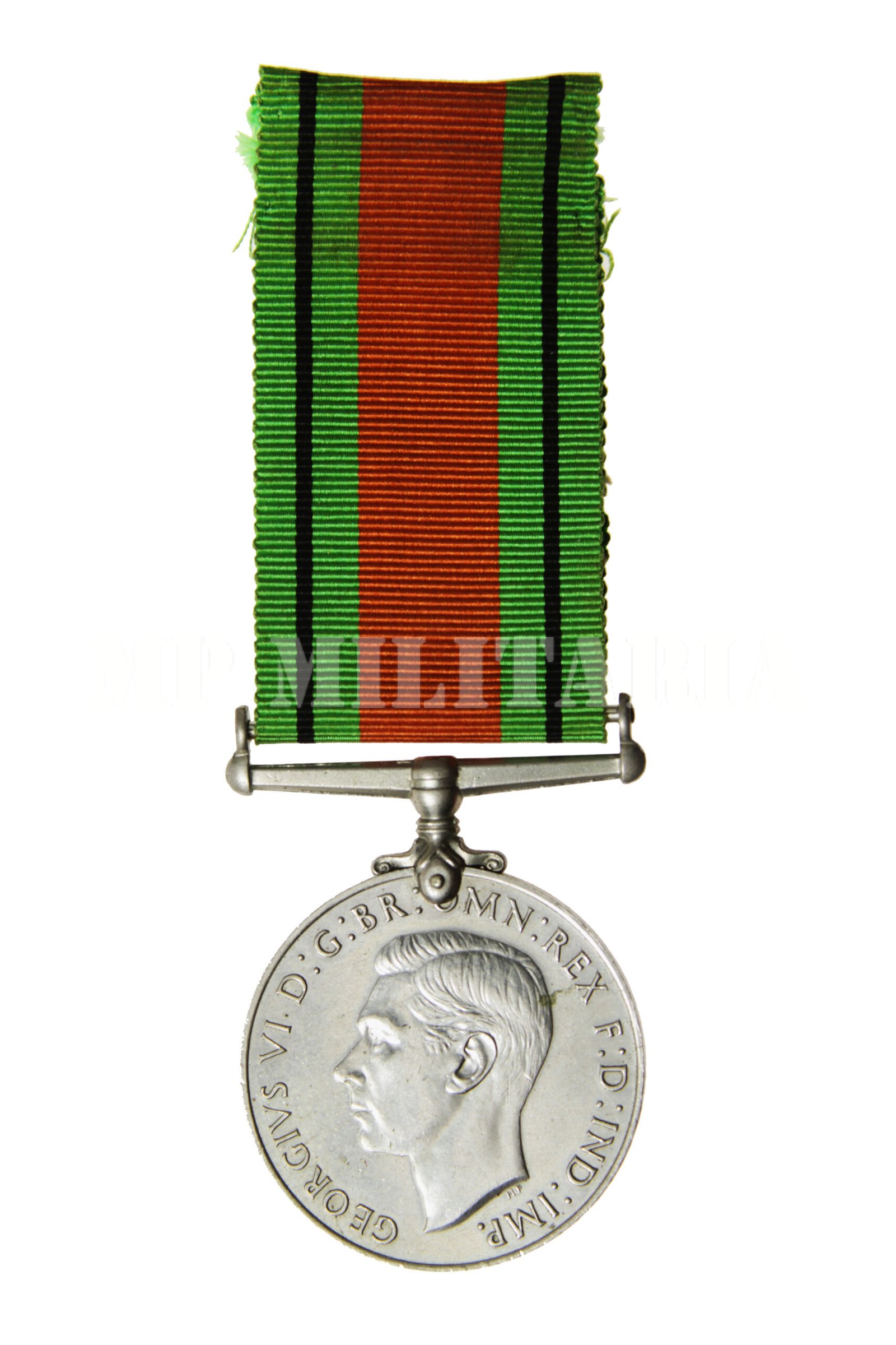 Medalha de Defesa (The Defense Medal 1939 – 1945) do Reino Unido, da II Guerra Mundial, instituída em maio de 1945, apresenta a efigie do Rei George VI no anverso;