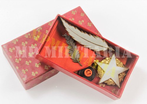 Medalha não oficial francesa da I Guerra para feridos civis “Médaille du Blessé Civils” com palma, na caixa acompanha roseta, fita de miniatura e distintivo de pena branca;