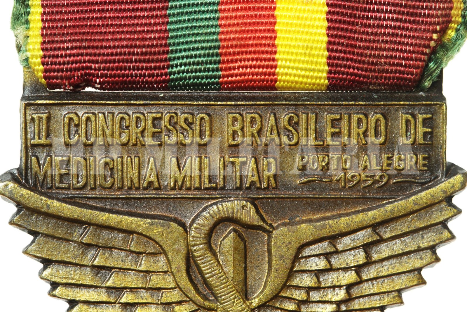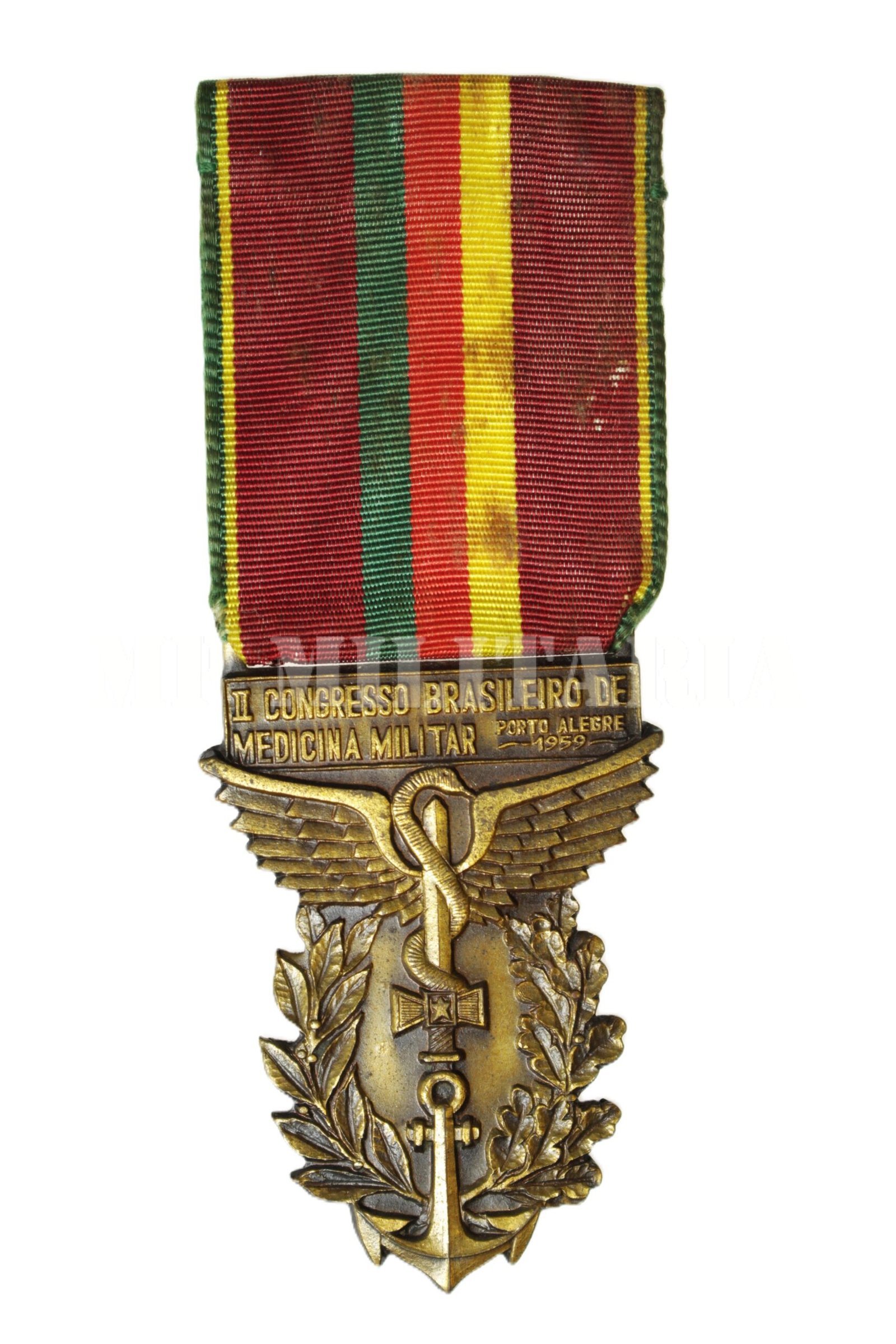 Medalha do “II Congresso Brasileiro de Medicina Militar”, o congresso foi realizado em Porto Alegre 1959, as cores da bandeira riograndense no centro da fita;