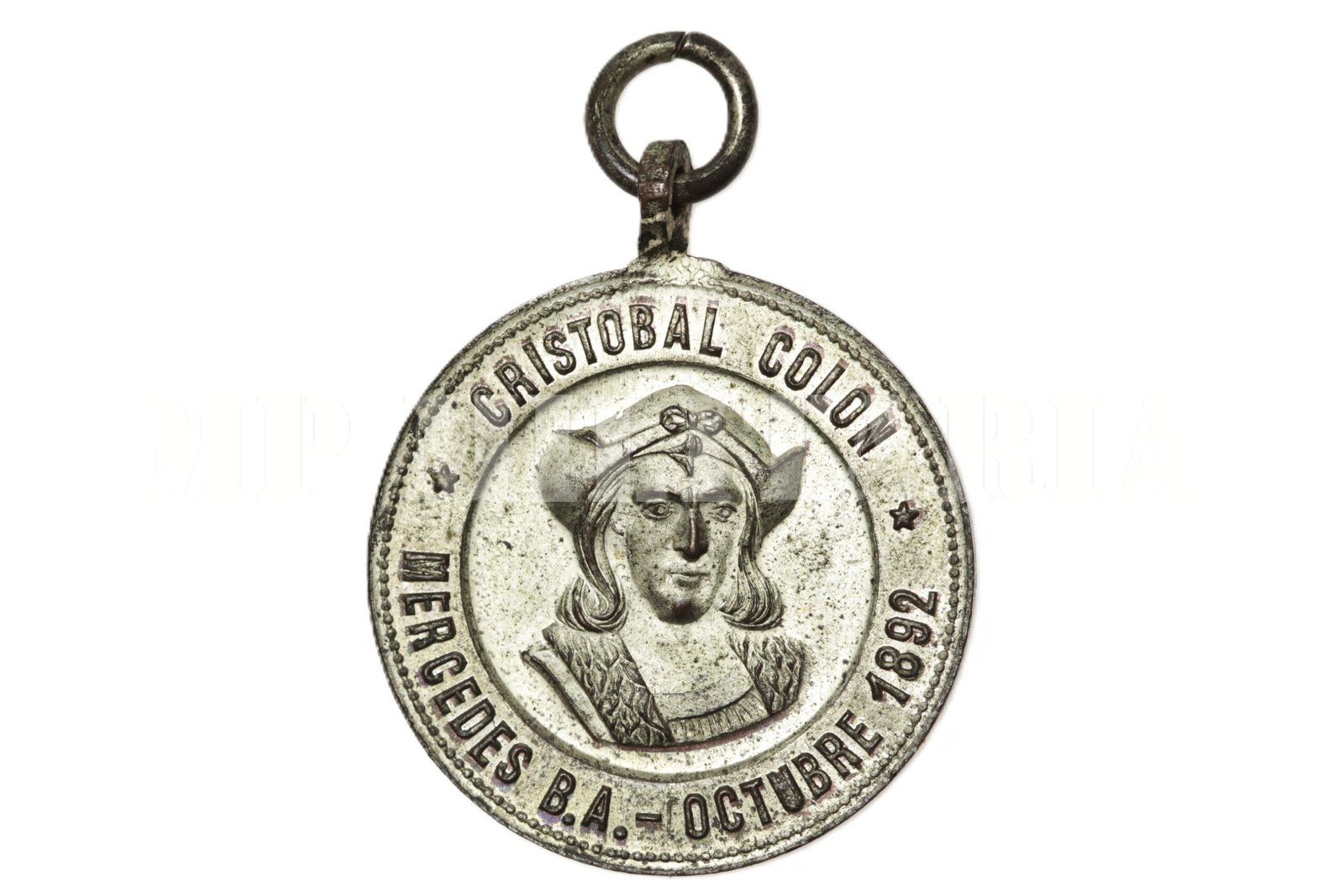 Medalha espanhola de 1892 com Cristóvão Colombo que comemora o 4º Centenário do Descobrimento da América “4º Cetenario Del Descubrimiento de America 1492 – 1892”;