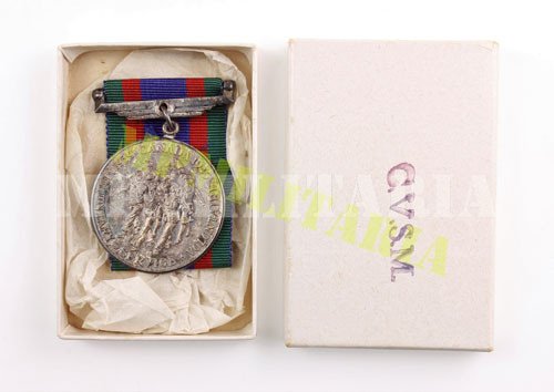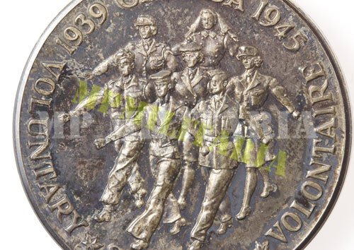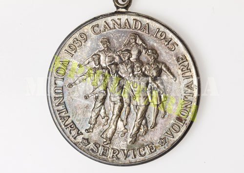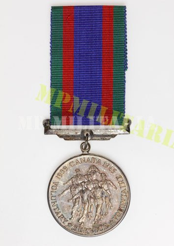 canadense da II Guerra “Serviço Voluntario 1939 – 1945” (Volunteer Service Medal 1939 – 1945), instituída em 22 de outubro de 1943 concedida ao pessoal da Marinha, Exército e Força Aérea do Canadá, que serviu voluntariamente em serviço ativo e que honrosamente tenha completado dezoito meses (540 dias) total de serviço voluntário a partir de 3 de setembro de 1939. Acompanha caixa.