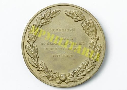 Medalha comemorativa do sesquicentenário de nascimento do Imperador Dom Pedro II 1825 – 1975, feita pelo Museu Imperial de Petrópolis e cunhada na Casa da Moeda do Brasil.