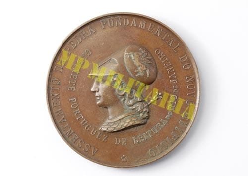 Medalha de 1880 que comemora o Terceiro Centenário de Luiz de Camões (1524 – 1580) feita pelo Gabinete Português de Leitura do Rio de Janeiro por ocasião do lançamento da pedra fundamental de seu novo edifício.