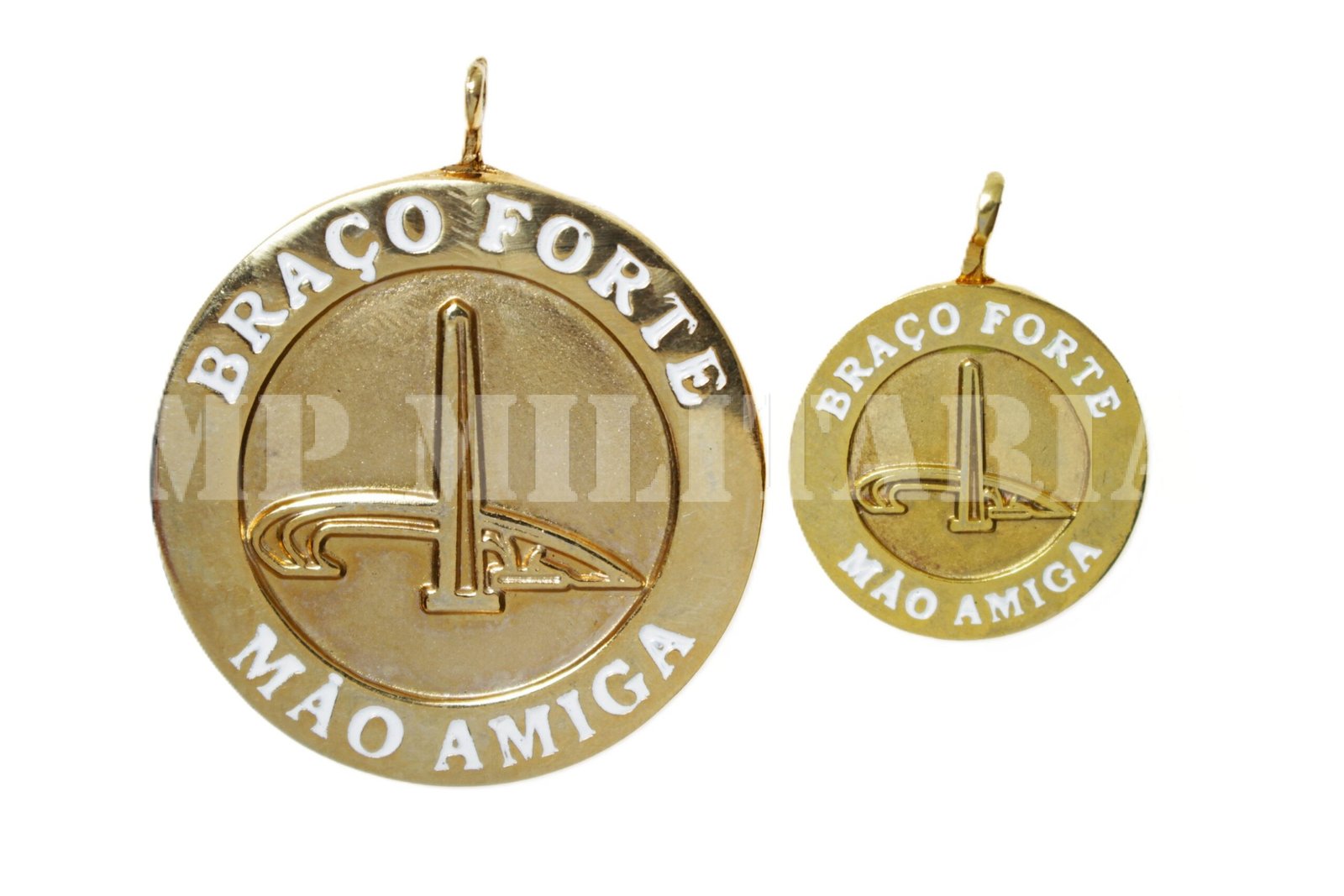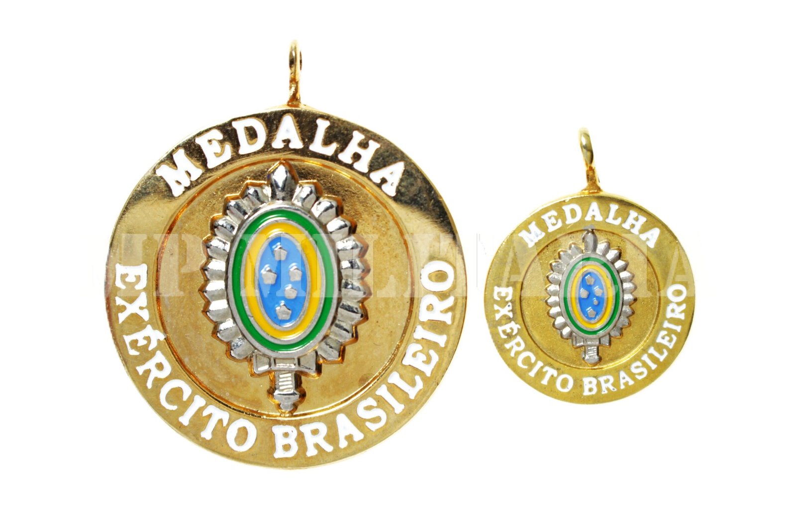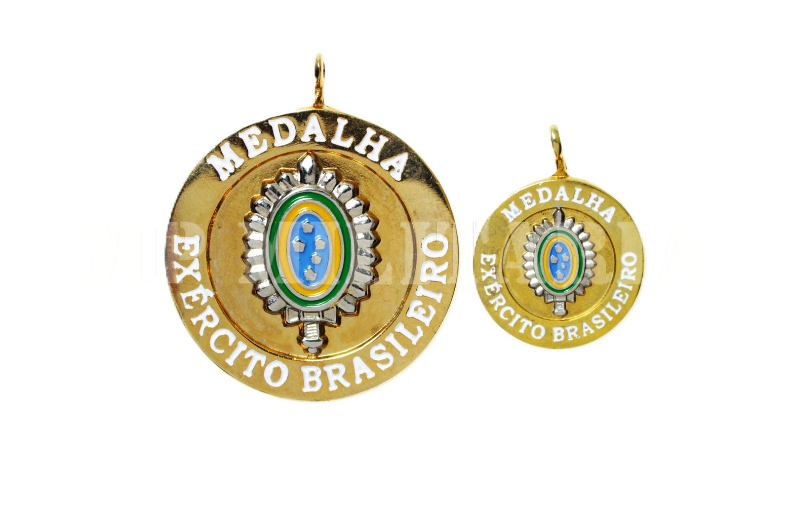 Em metal dourado;