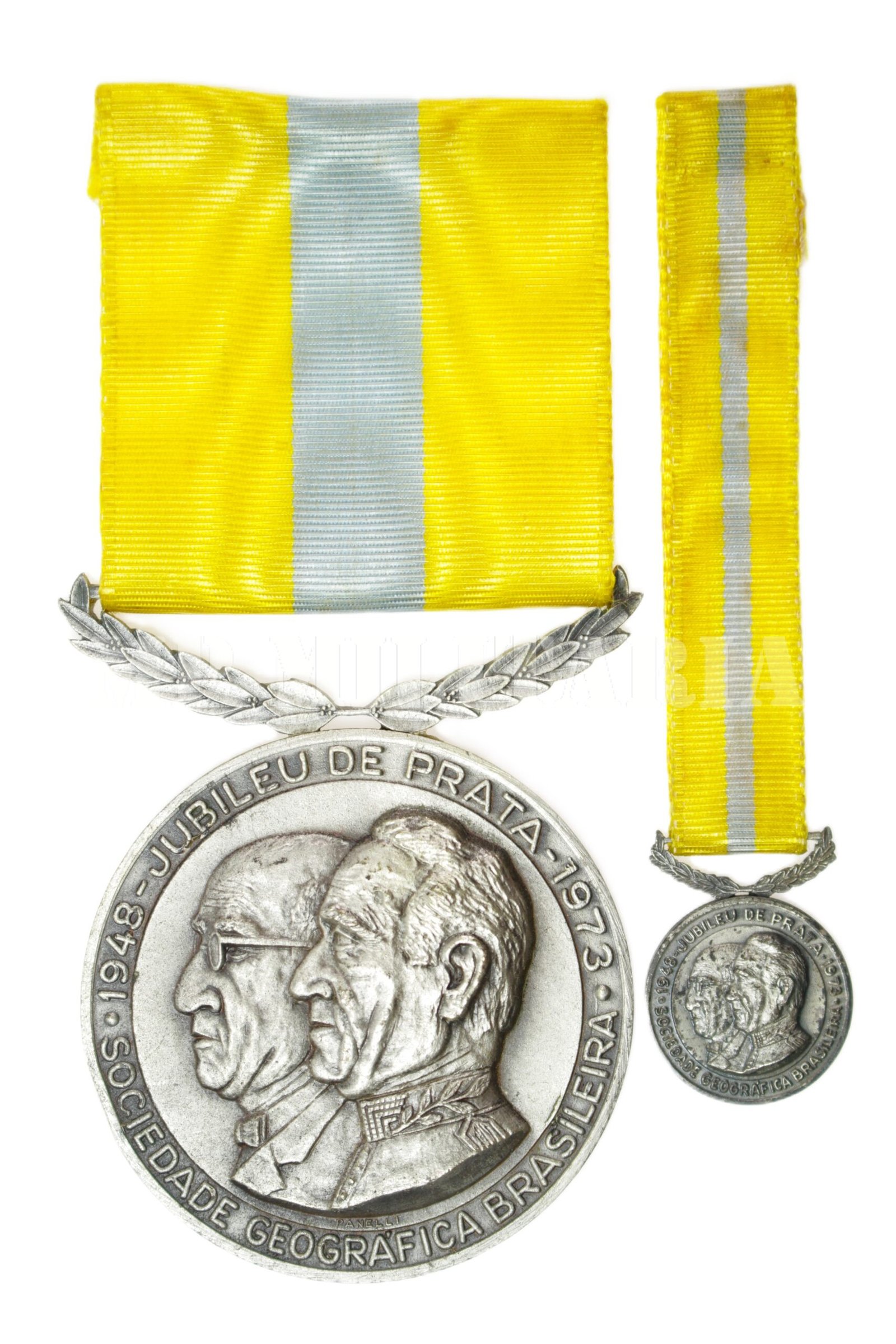 Medalha e miniatura da medalha de 1973 “Jubileu de Prata da Sociedade Geográfica Brasileira”, com a efígie do Marechal Rondon;