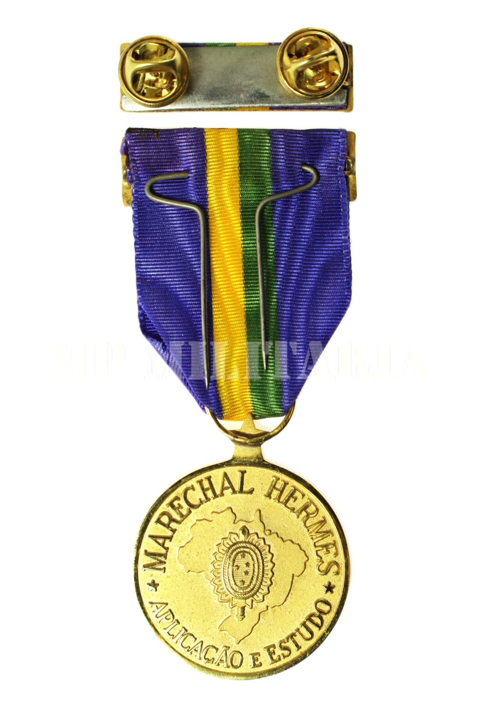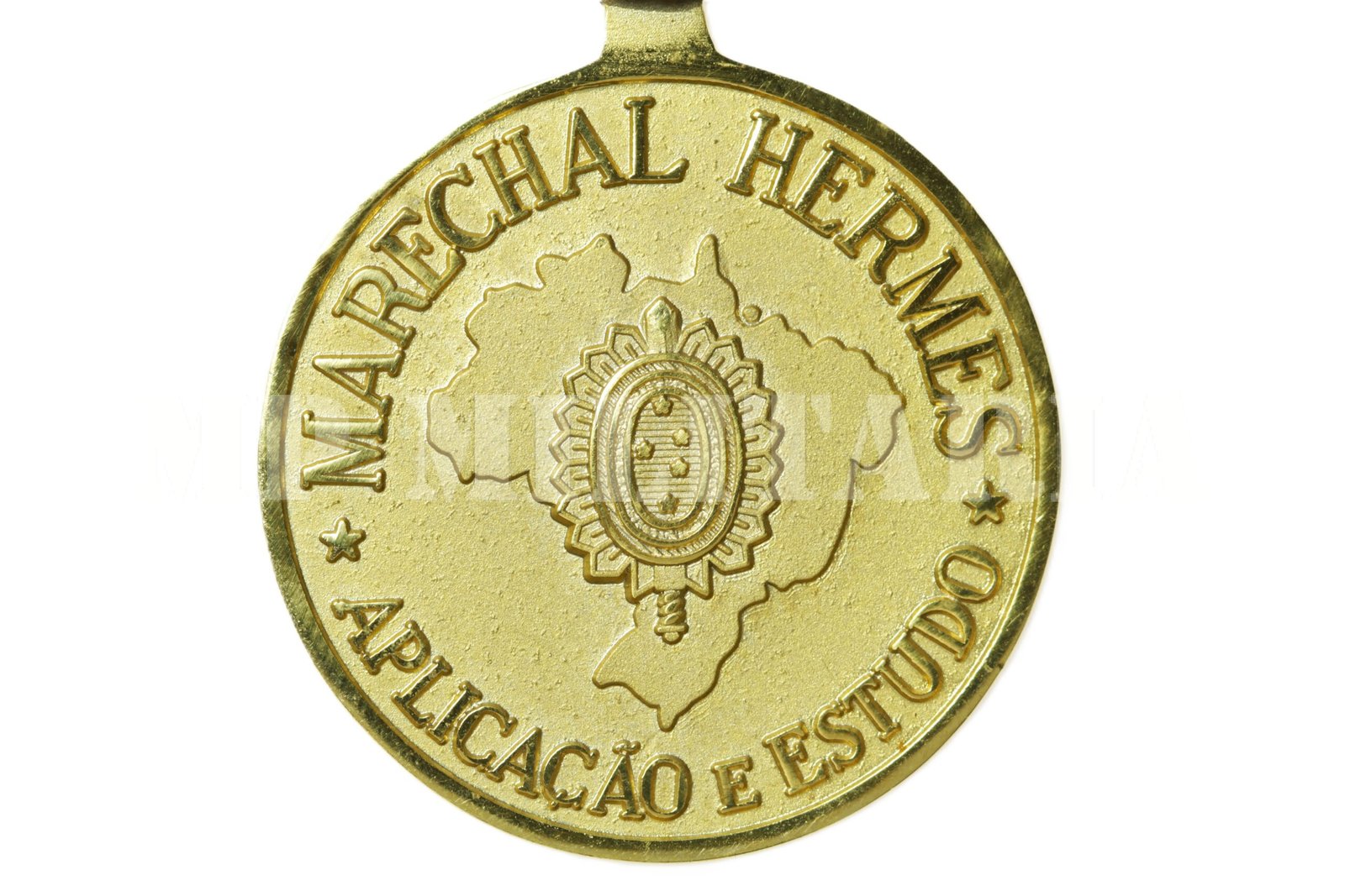Medalha Marechal Hermes Aplicação em Estudo de grau Ouro, com três Coroas / “tríplice Coroado”, criada em 1955 para militares da ativa e do magistério do Exército que haja concluído ou venham a concluir, anualmente, em primeira época, os cursos das seguintes escolas, AMAN ESE e EVE, EsAO, IME, ESA e EsCEME;
