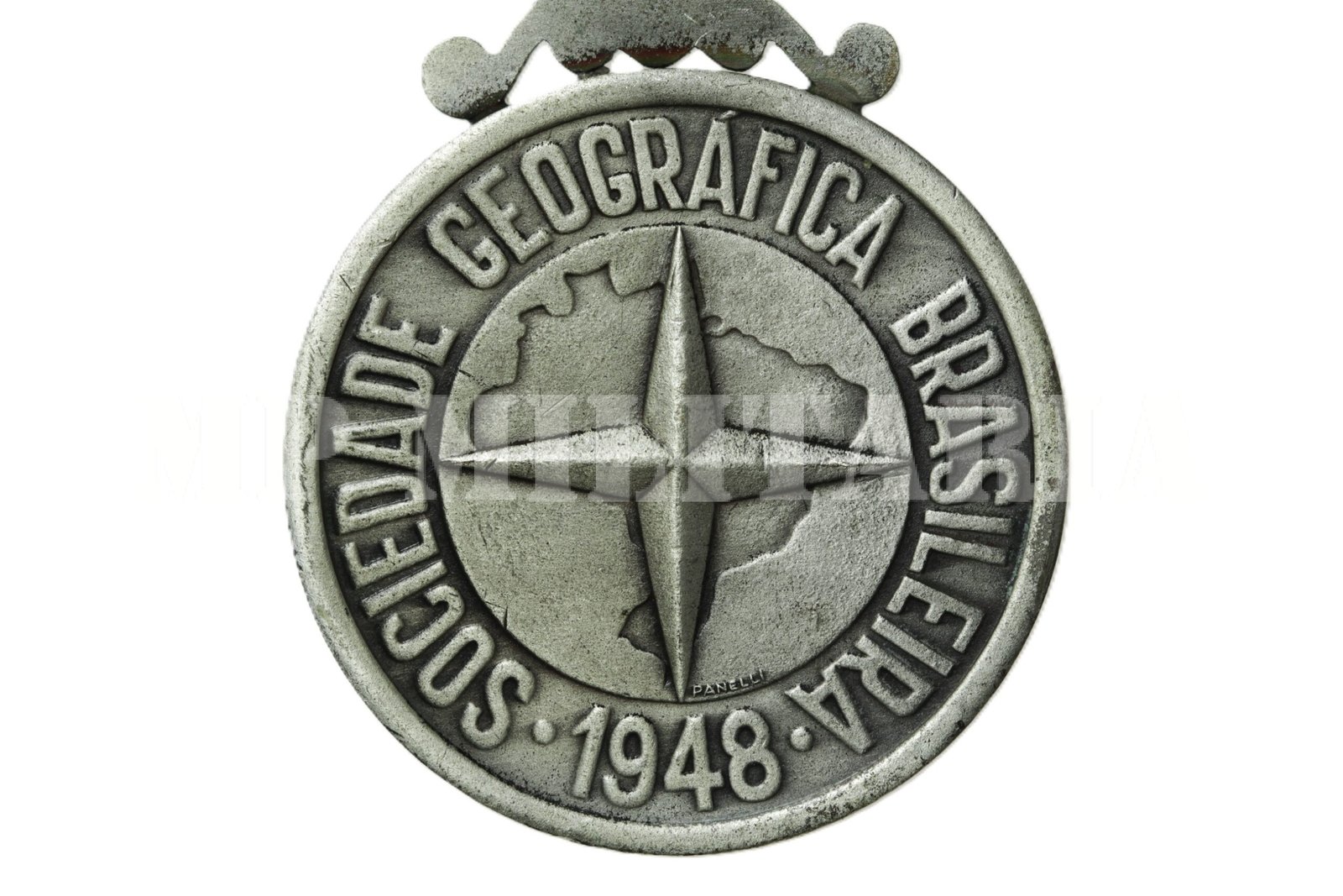 Reverso: No centro a rosa dos ventos sobre o mapa do Brasil e na orla a inscrição “Sociedade Geográfica Brasileira”;