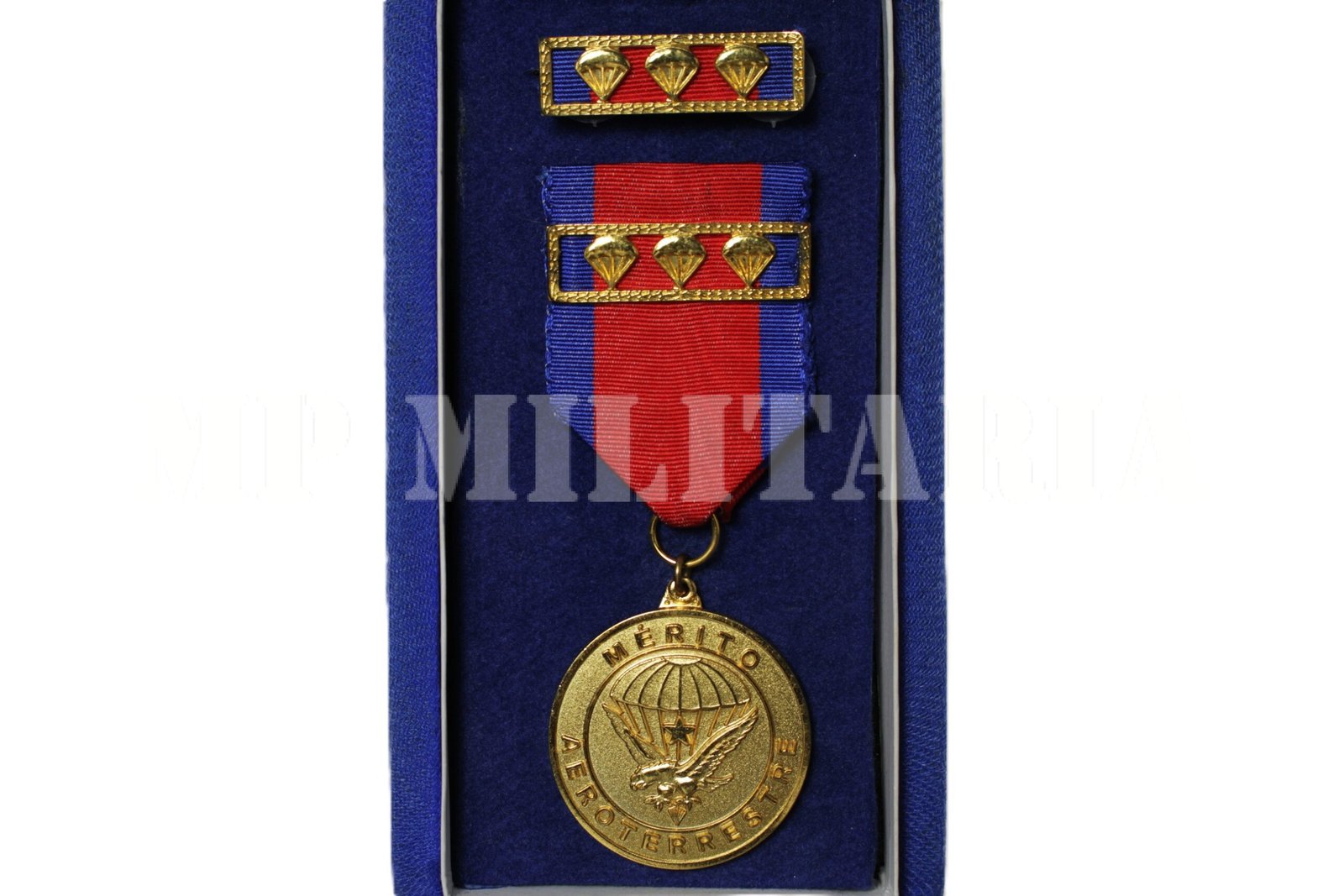Medalha Mérito Aeroterrestre, com passador grau ouro, instituída pelo decreto nº 6.789, de 3 de março de 2009, destinada a premiar os militares pára-quedistas do Exército Brasileiro da ativa ou na inatividade, que tenham se destacado pelo excelente desempenho funcional, irrepreensível conduta civil e militar, bem como pelos bons serviços prestados em organizações militares da Brigada de Infantaria Paraquedista ou da Brigada de Operações Especiais;
