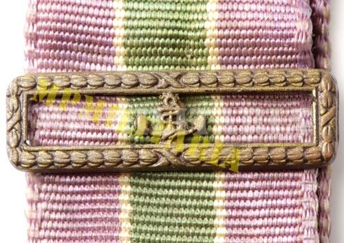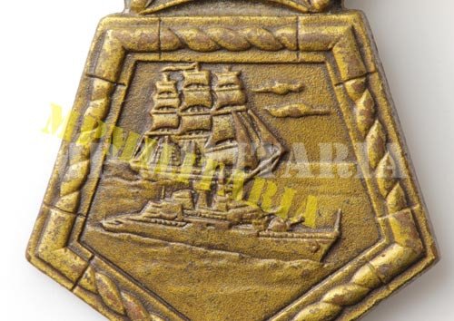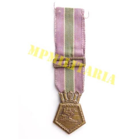 Miniatura da Medalha Mérito Marinheiro com 1 âncora, instituída pelo decreto 83.805 de 1 ago 1979 e e destina-se a distinguir os integrantes da Marinha que demonstram, em operações no mar, exemplar dedicação ou invulgar interesse pela profissão ou pelos misteres de bordo. A concessão é feita em função dos dias de mar ou de embarque: