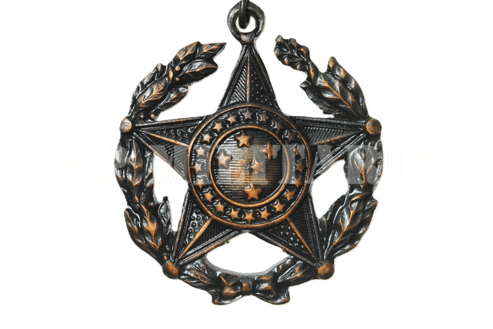 Medalha Militar de 10 anos de Bons Serviços, com passador com uma (1) estrela e barreta. Criada pelo decreto nº 4328 de 15 de novembro de 1901, concedida a militares das três forças (Exército, Marinha e Aeronáutica);