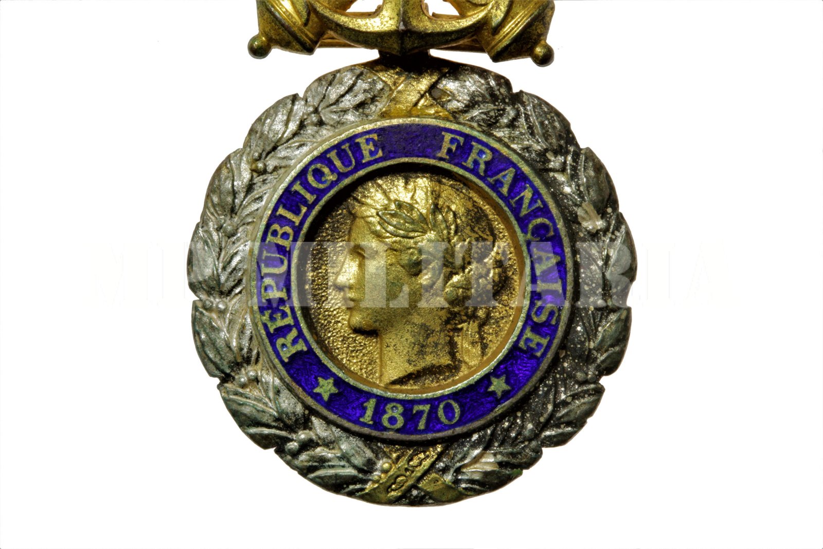 Medalha Militar Francesa “MÉDAILLE MILITAIRE” modelo 3ª República 1870 – 1940, instituída em 22/01/1852 por Napoleão III e concedida por coragem e devoção ao dever;