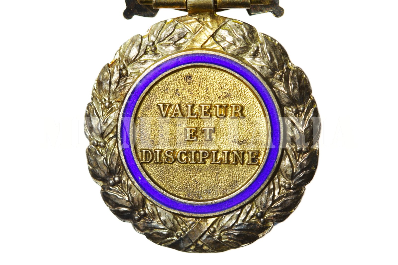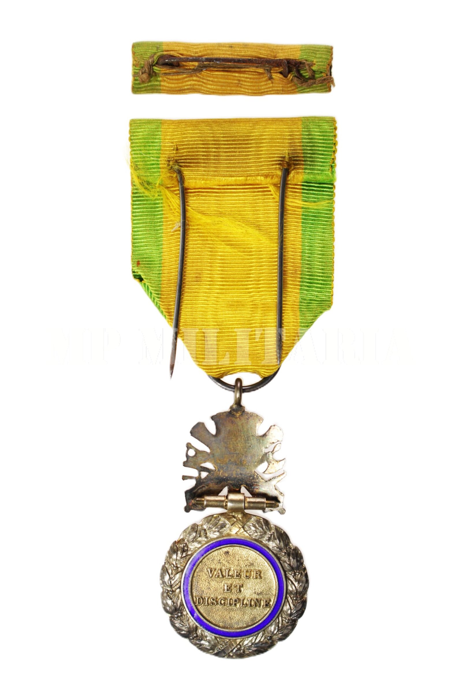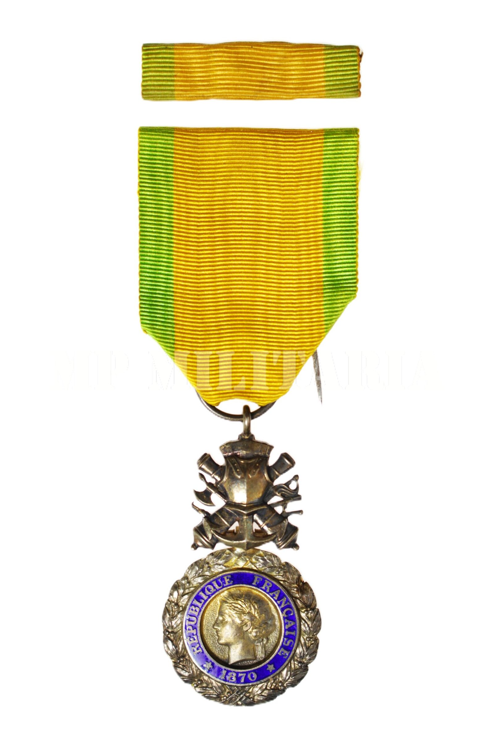 Medalha Militar Francesa “MÉDAILLE MILITAIRE” modelo 3ª República 1870 – 1940, com barreta, instituída em 22/01/1852 por Napoleão III e concedida por coragem e devoção ao dever;