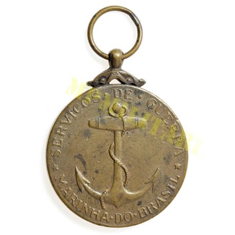Anverso: No centro a ancora e na orla a inscrição “Serviços de Guerra – Marinha do Brasil”;
