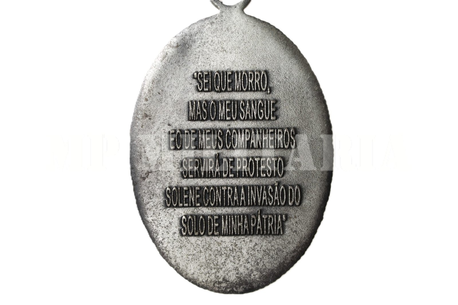 Medalha Tenente Antônio João com barreta, apresenta no reverso a frase do herói da guerra do Paraguai: “Sei que morro, mas o meu sangue e de meus companheiros servirá de protesto solene contra a invasão do solo de minha pátria”;