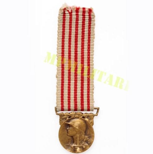 Miniatura da medalha francesa Comemorativa da Grande Guerra 1914 – 1918 “Médaille commémorative de la Grande Guerre” da I Guerra Mundial, instituída em 23 de junho de 1920 e concedida por serviços militares e auxiliares prestados durante a I Guerra.