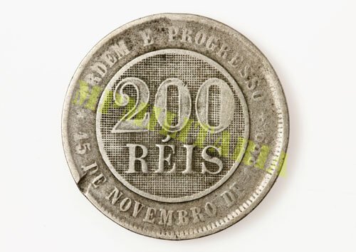 Moeda de 200 Réis de 1894 cunhada na Casa da Moeda do Rio de Janeiro