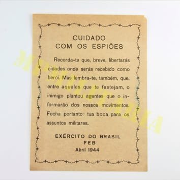 Panfleto da FEB – Força Expedicionária Brasileira “Cuidado com os Espiões”;
