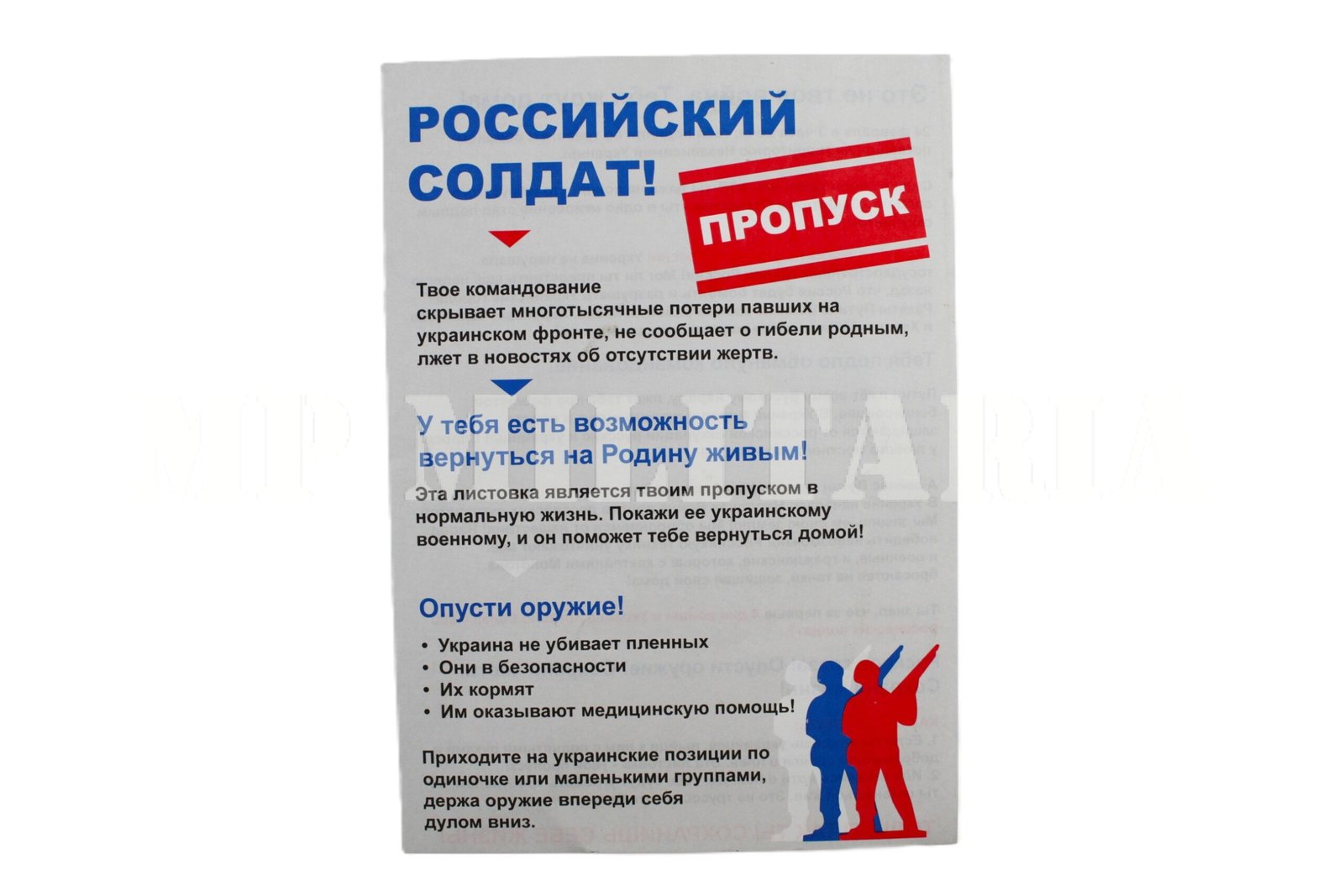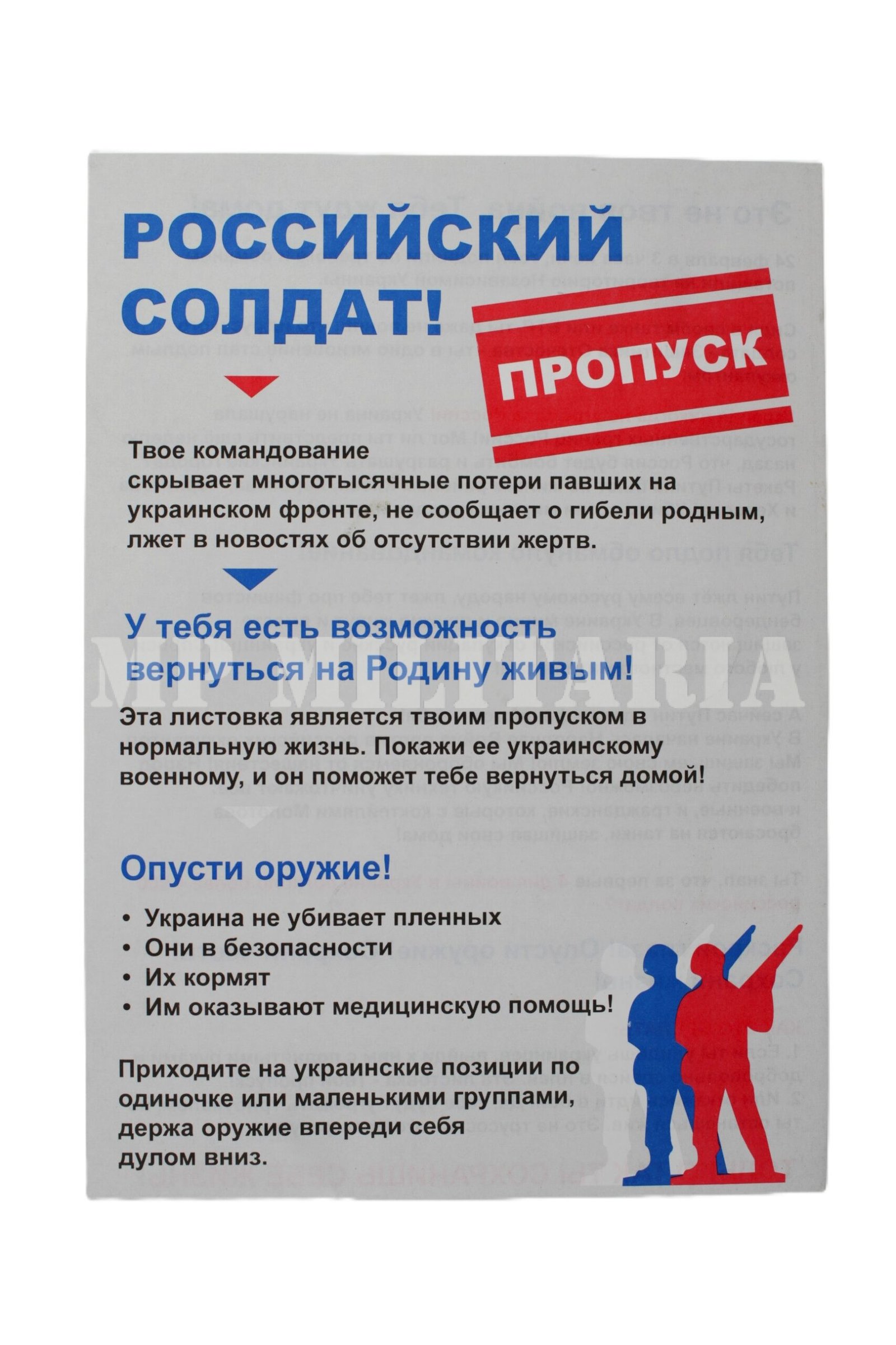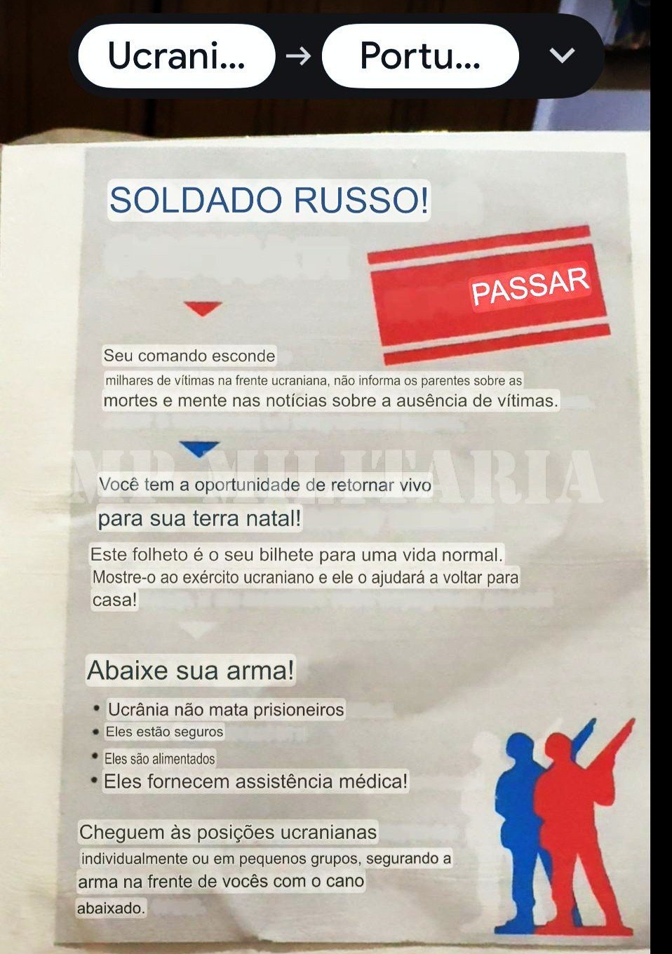 Panfleto militar da Ucrania de guerra psicológica, da atual Guerra Russo – Ucraniana;
