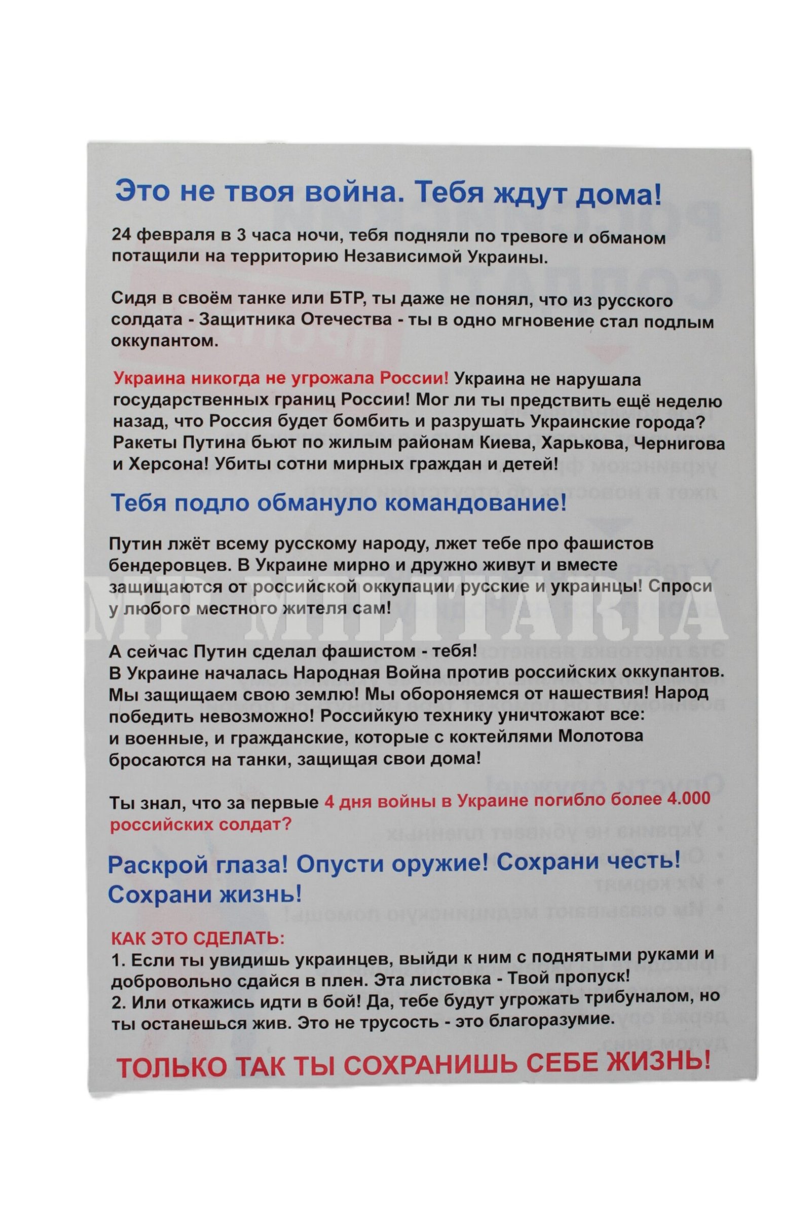 PANFLETO DA UCRÁNIA DE GUERRA PSICOLÓGICA – GUERRA RUSSO UCRANIANA