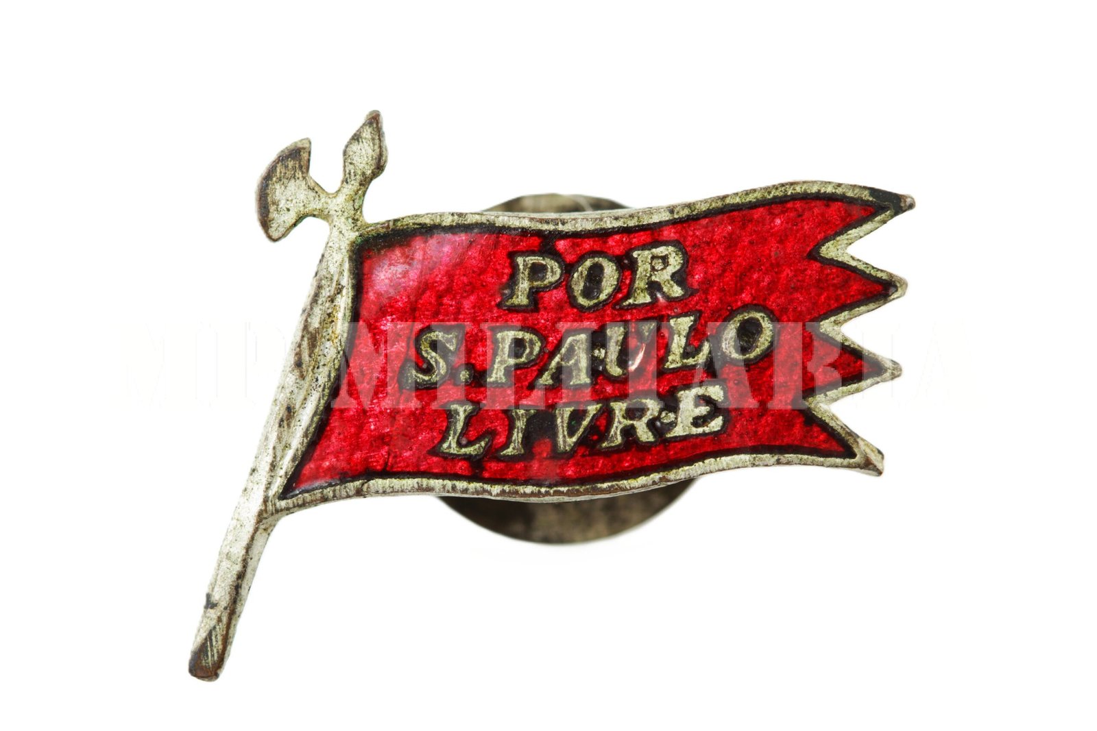 Pin da bandeira com a legenda “Por S. Paulo Livre”, da época da Revolução Constitucionalista de 1932;