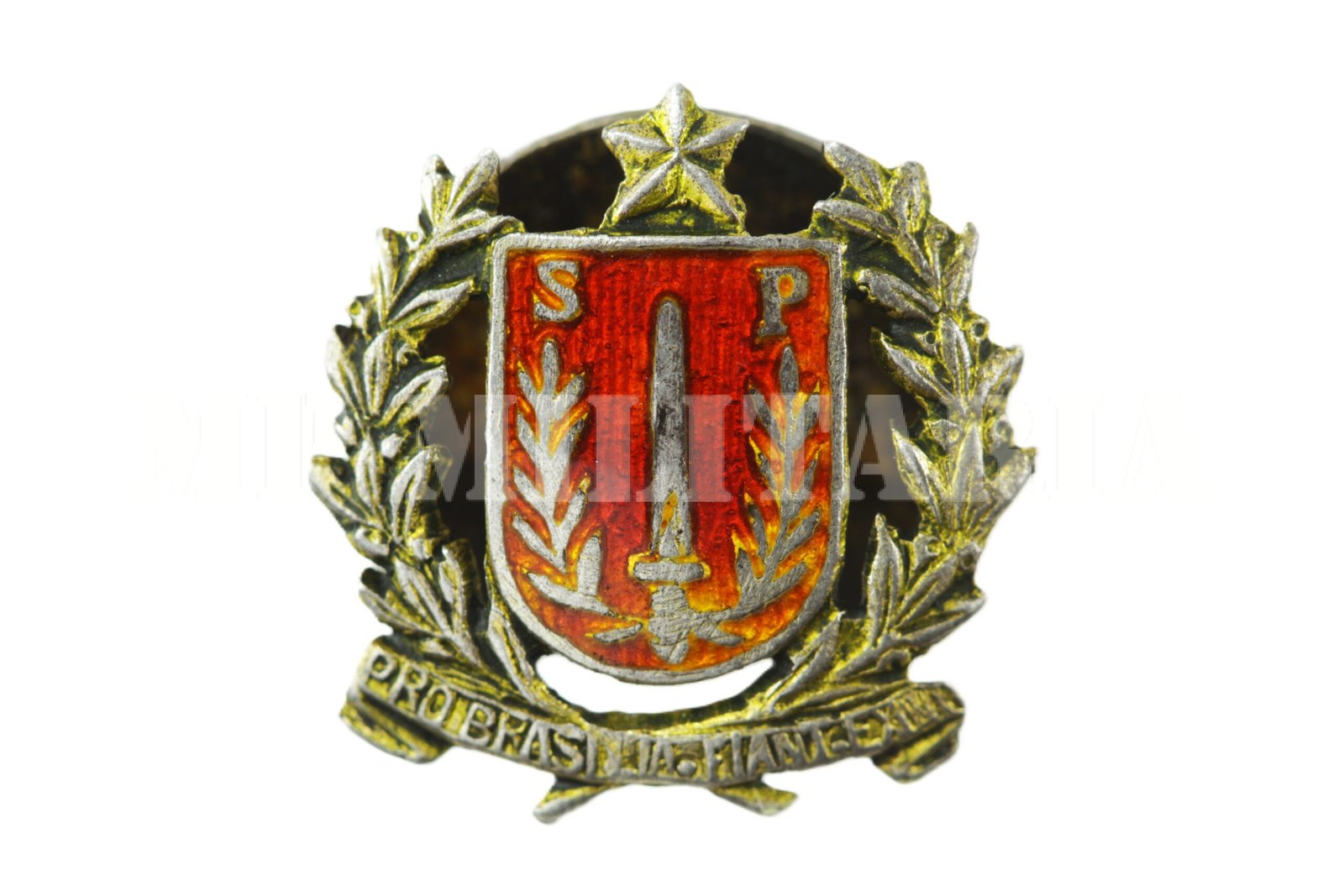 Pin do brasão do Estado de São Paulo, com dois contrastes de joalheiro no verso, da época da Revolução de 1932;