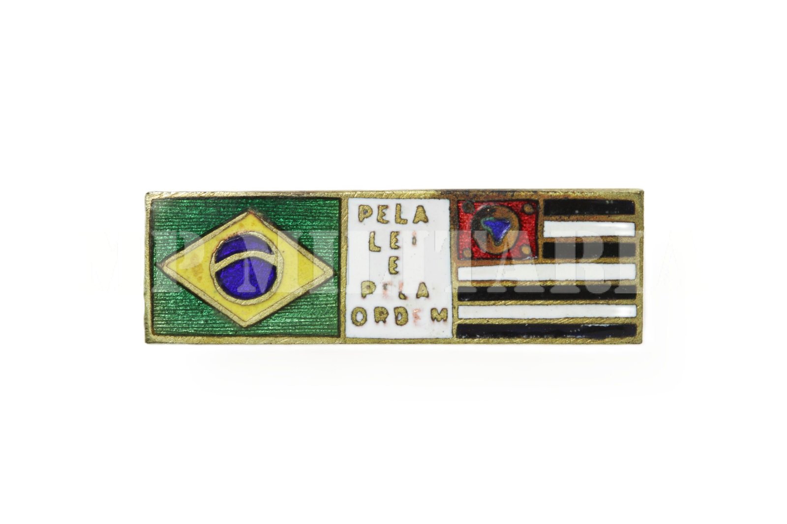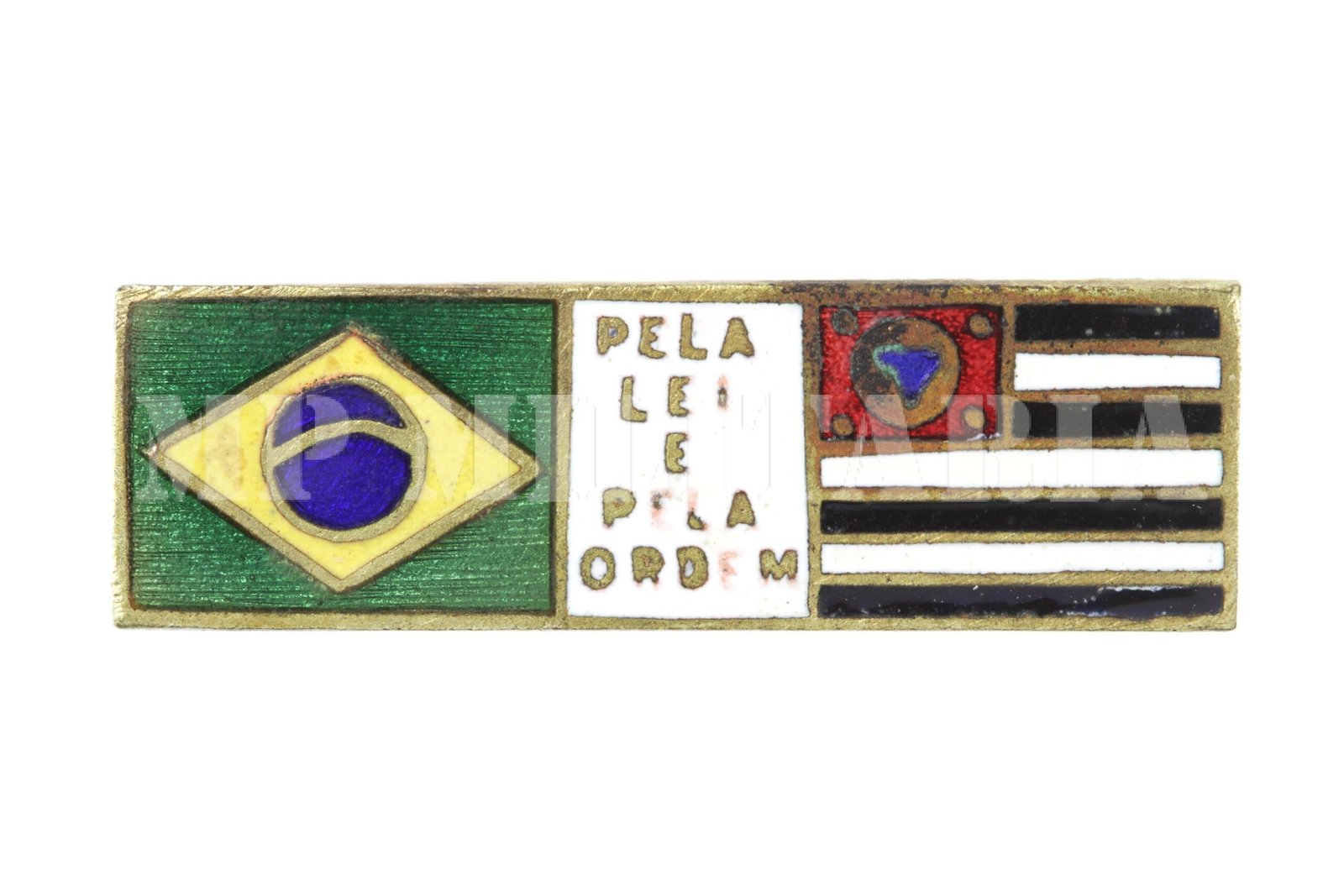 Pin variante esmaltado, descrito no Álbum Paulista como “Pela Lei e Pela Ordem (paulista)”, feito durante a Revolução Constitucionalista de 1932;