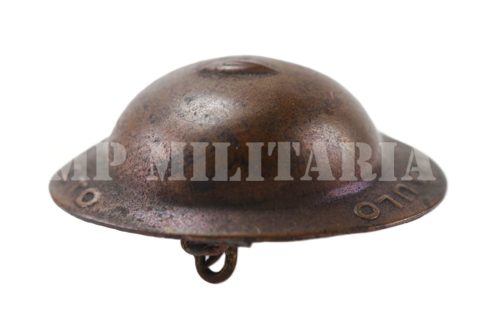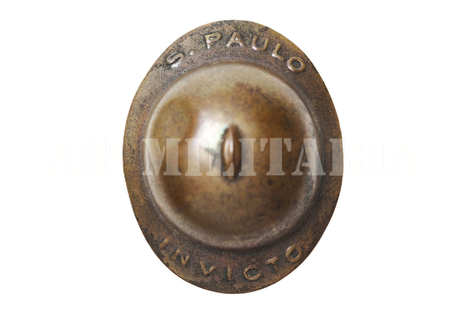 Pin de capacete “São Paulo Invicto”, foi o primeiro distintivo produzido durante a Revolução Constitucionalista de 1932;