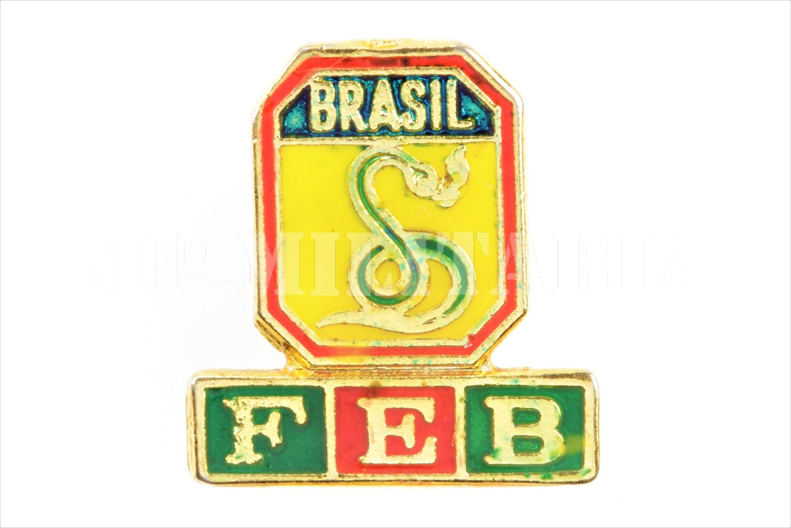 Pin de lapela da FEB (Força Expedicionária do Brasil), com a cobra fumando sobre a barreta de campanha;