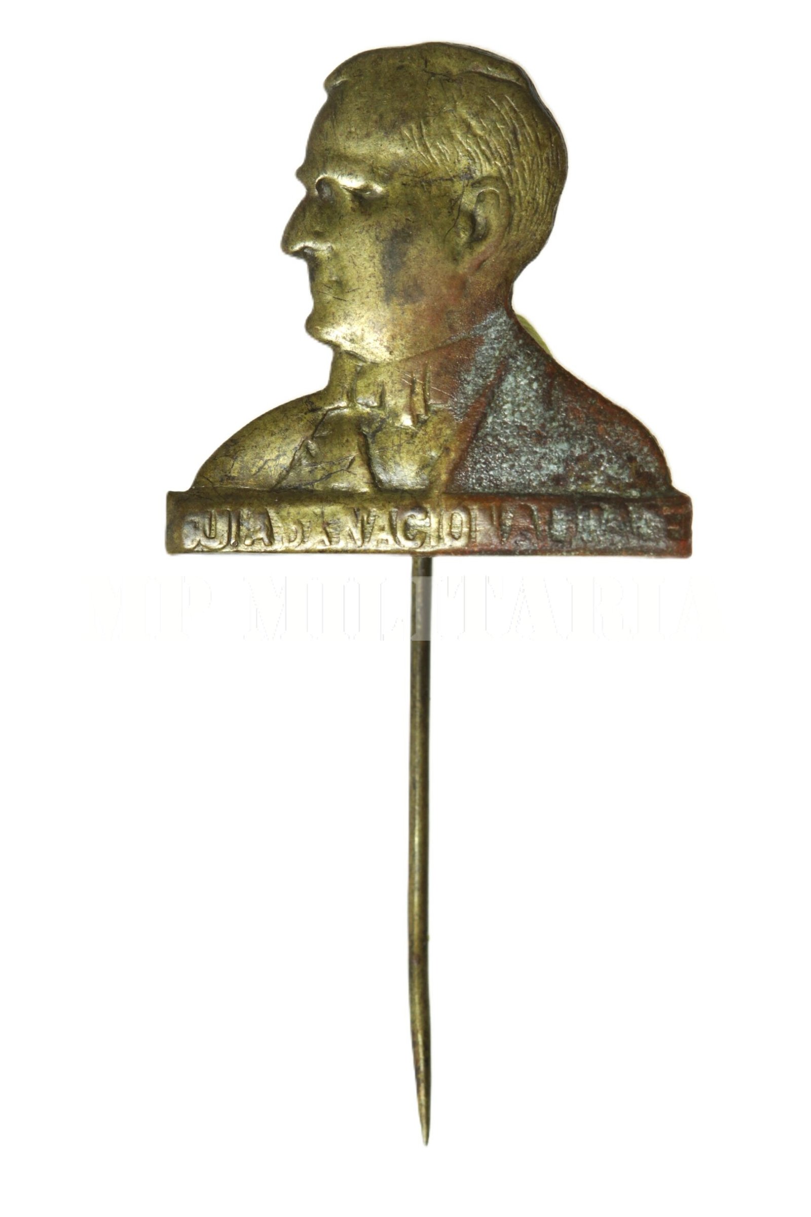 Pin com a efigie do Presidente Getúlio Vargas, com a inscrição: “Guia da Nacionalidade”;