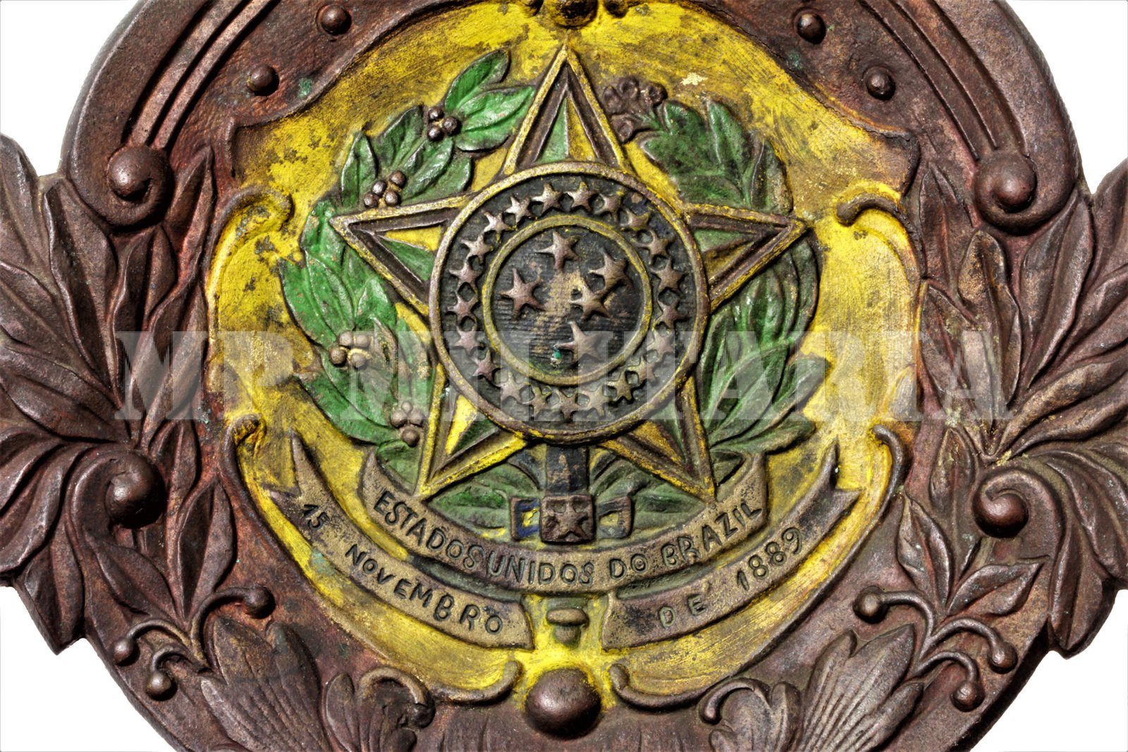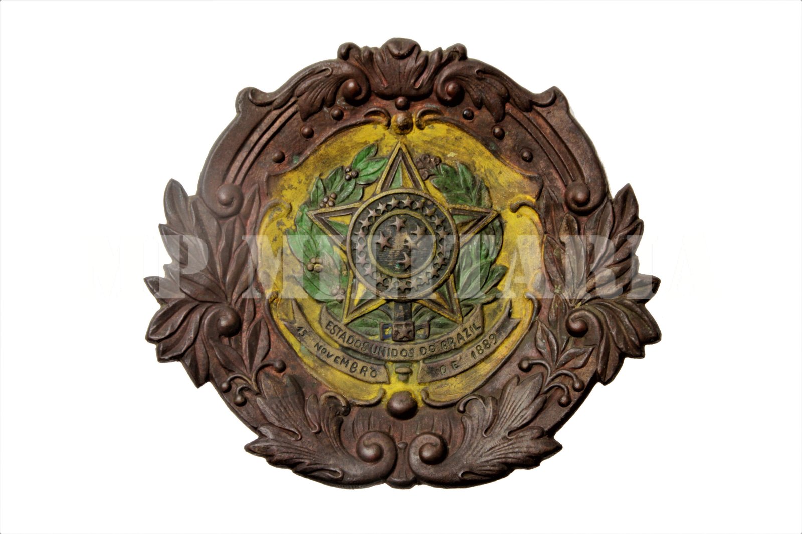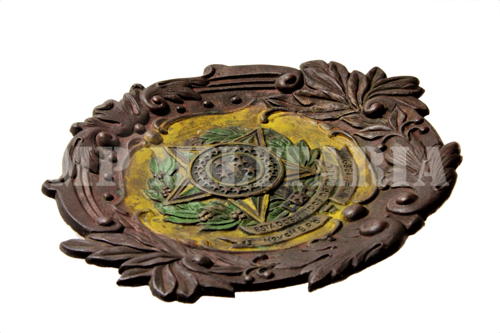 Placa de bronze com o Brasão de Armas do Brasil, feito na época do da Revolução Constitucionalista de 1932;