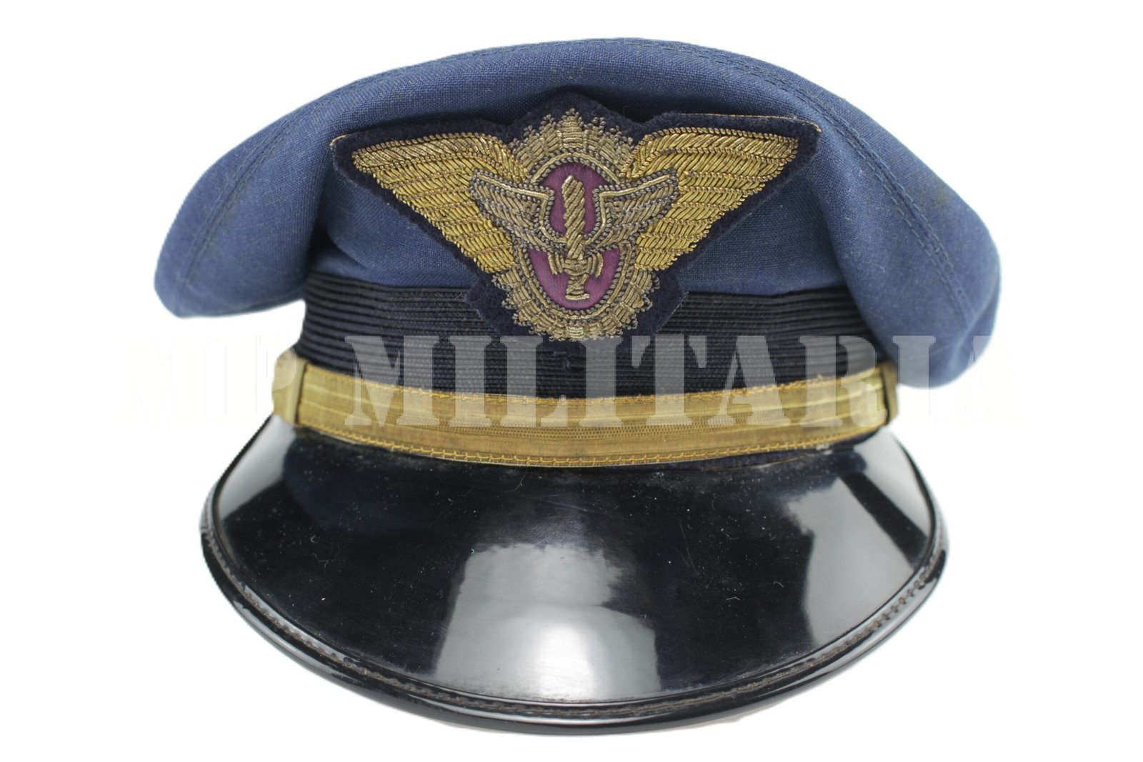 Quepe para Oficial subalterno da FAB – Força Aérea Brasileira, modelo 1947, classificado no RUMAER – Regulamento de Uniformes para os Militares da Aeronáutica, como: Boné azul barateia;
