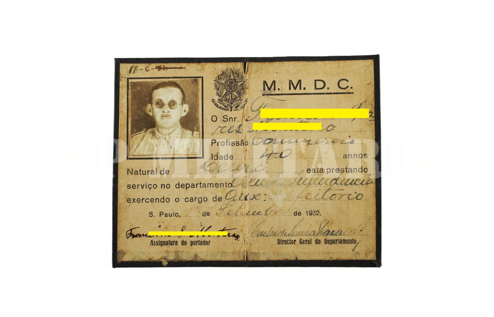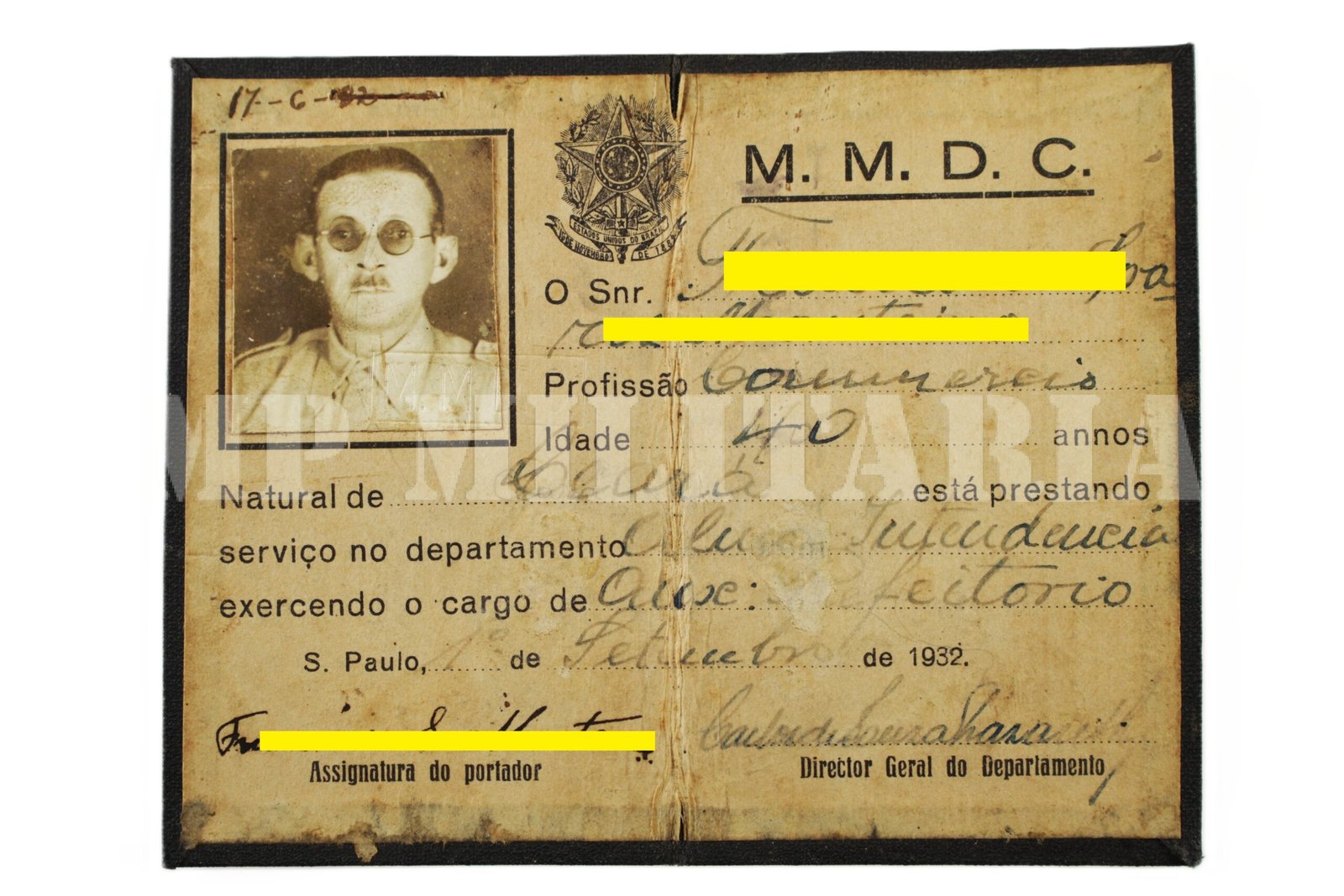 Rara carteira de identidade de um do Movimento Constitucionalista M.M.D.C., emitido em setembro de 1932;
