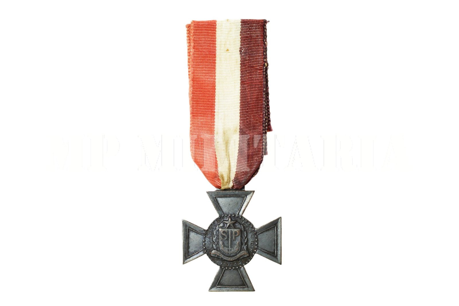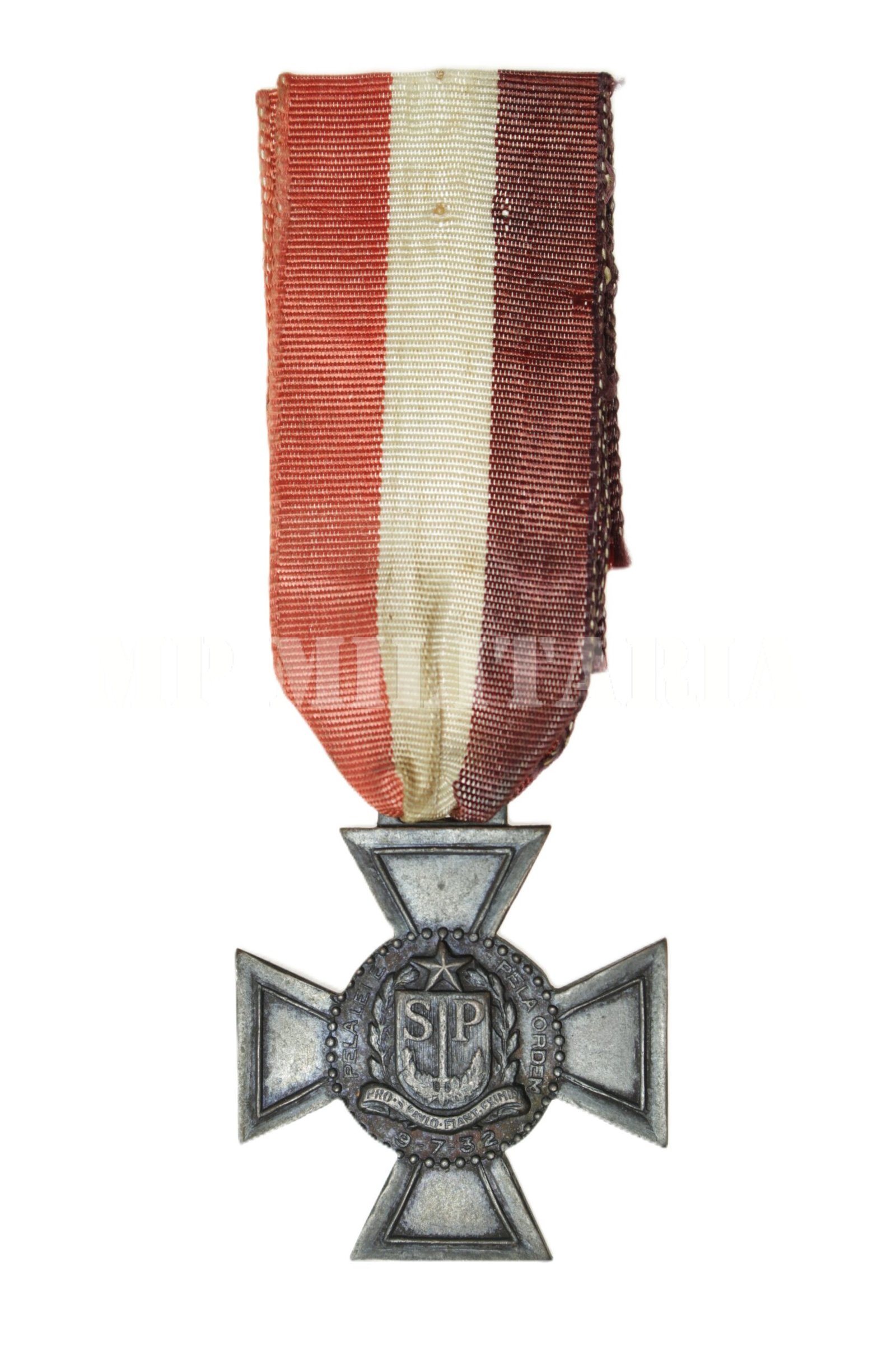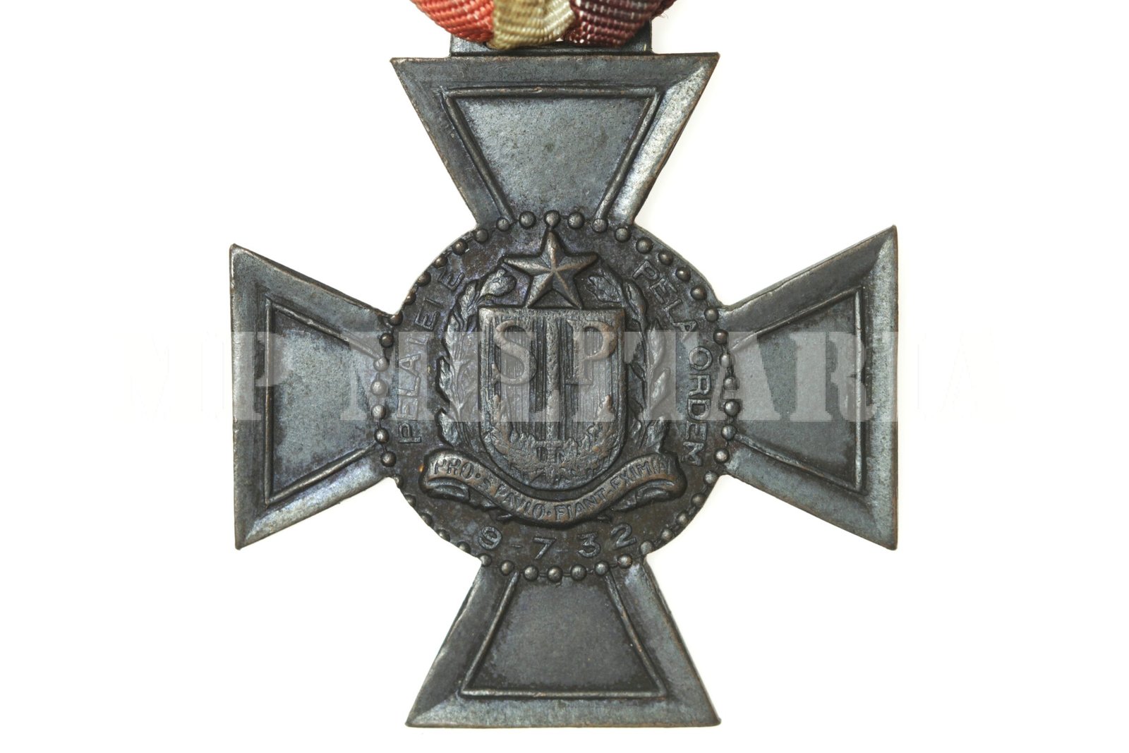 Rara medalha Cruz de Campinas, da Revolução Constitucionalista de 1932. Apresenta as inscrições, no anverso “Pela Lei e Pela Ordem”, e no reverso “Campanha Constitucionalista”;