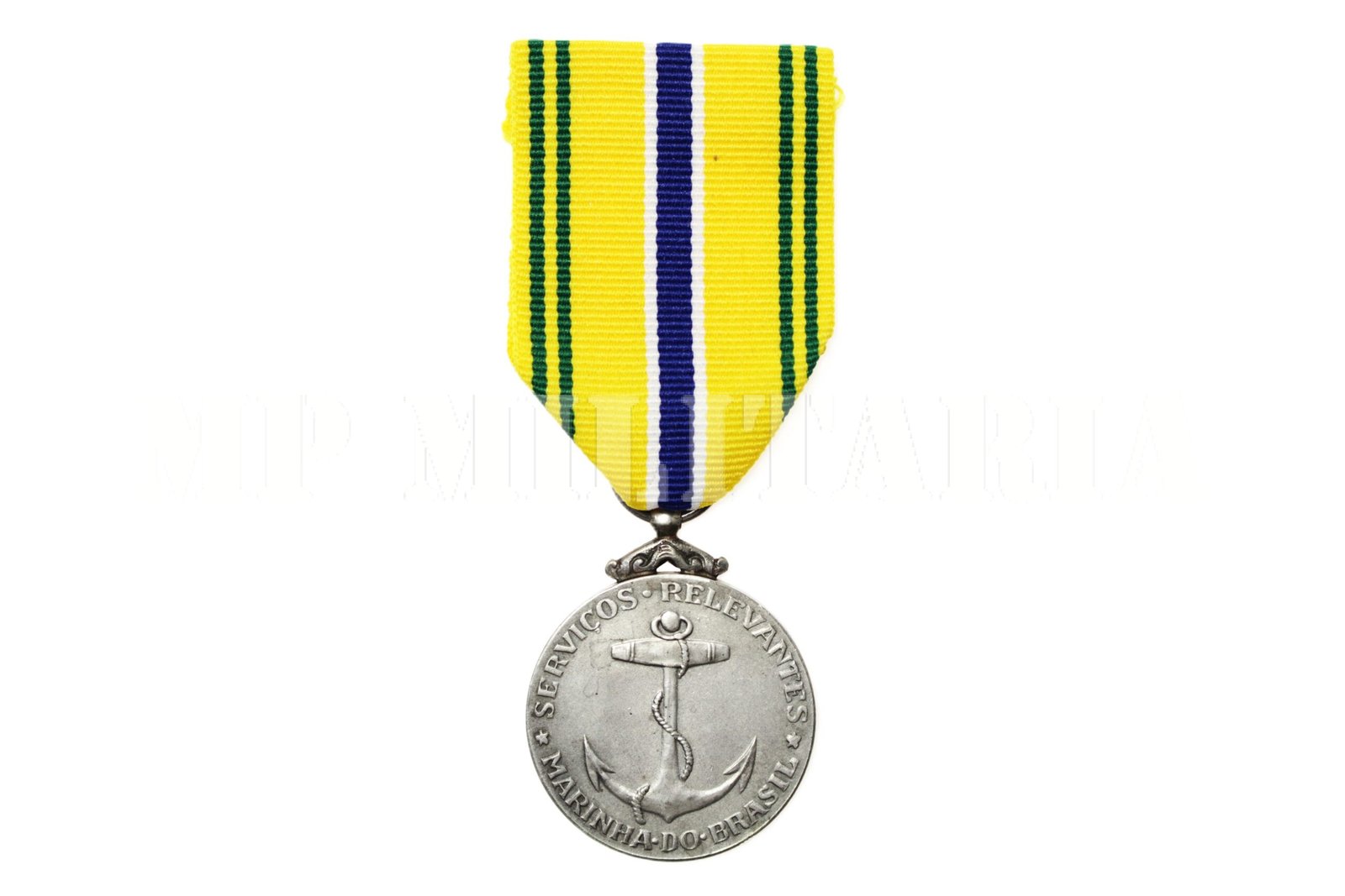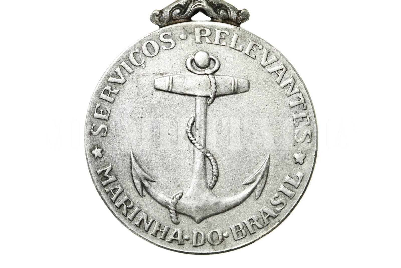 Rara medalha de Serviços Relevantes da Marinha do Brasil, instituída pelo Decreto nº 6774 de agosto de 1944 e concedida aos militares que prestaram serviços relevantes ao Brasil ou conduta excepcional em operações de guerra e aos que tiverem feito 300 ou mais dias de mar em campanha, durante a II Guerra Mundial;