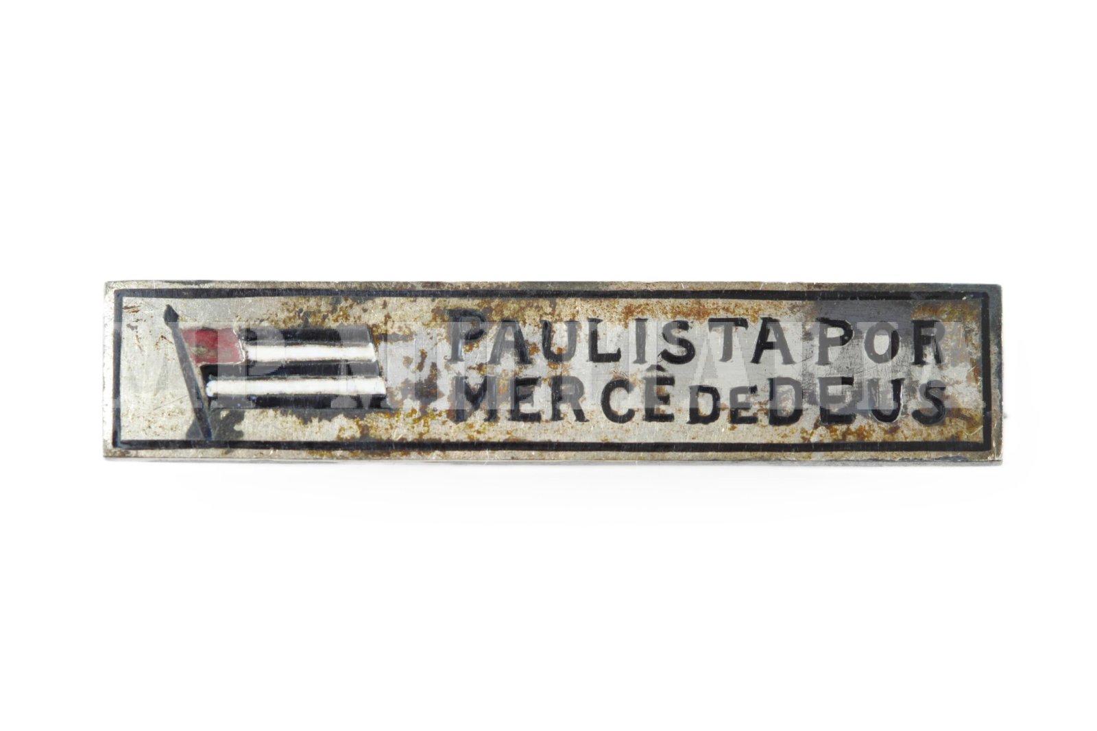 Raro pin descrito no Álbum Paulista como, “Paulista por Mercê de Deus”, produzido durante a Revolução Constitucionalista de 1932;