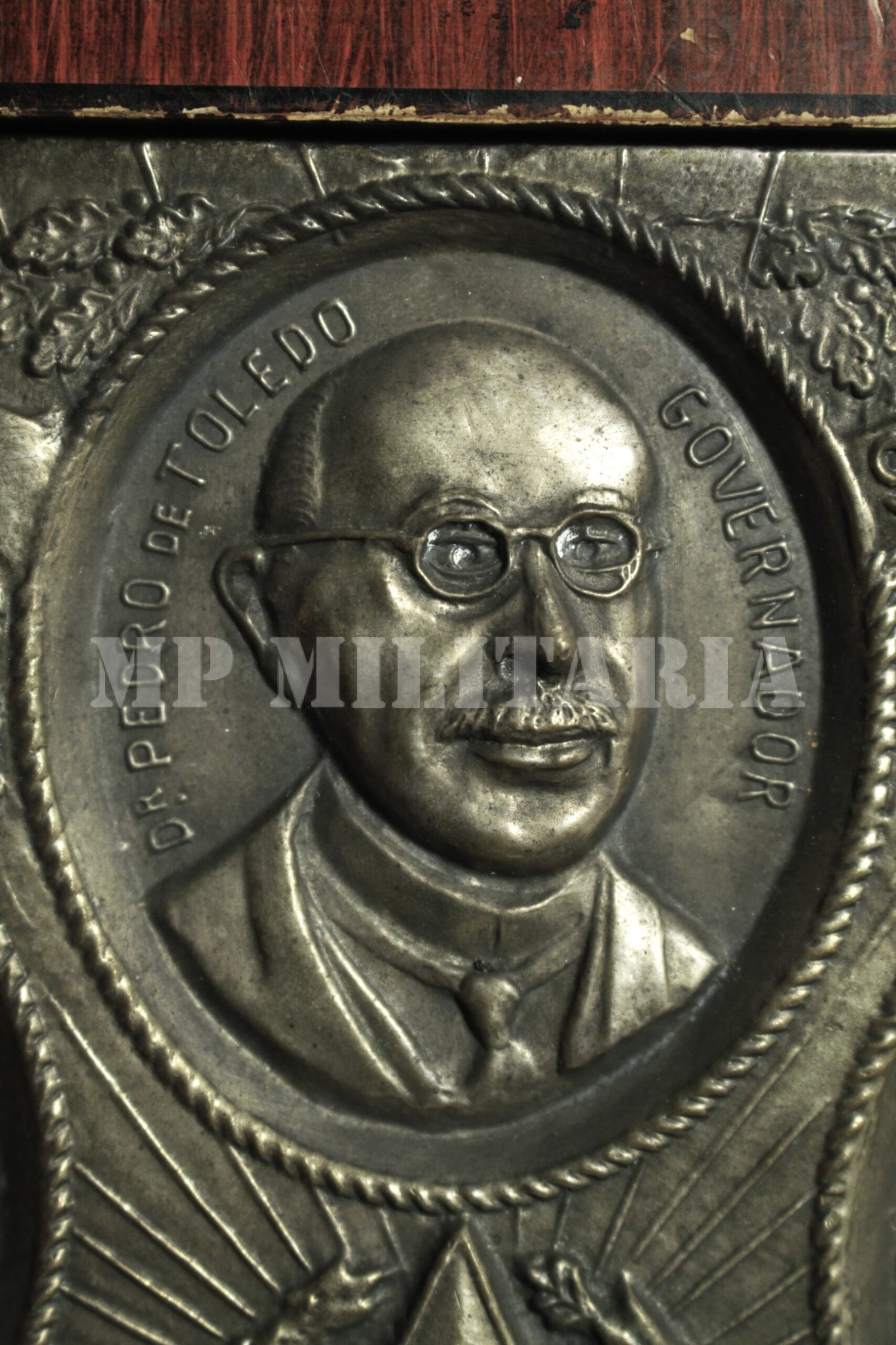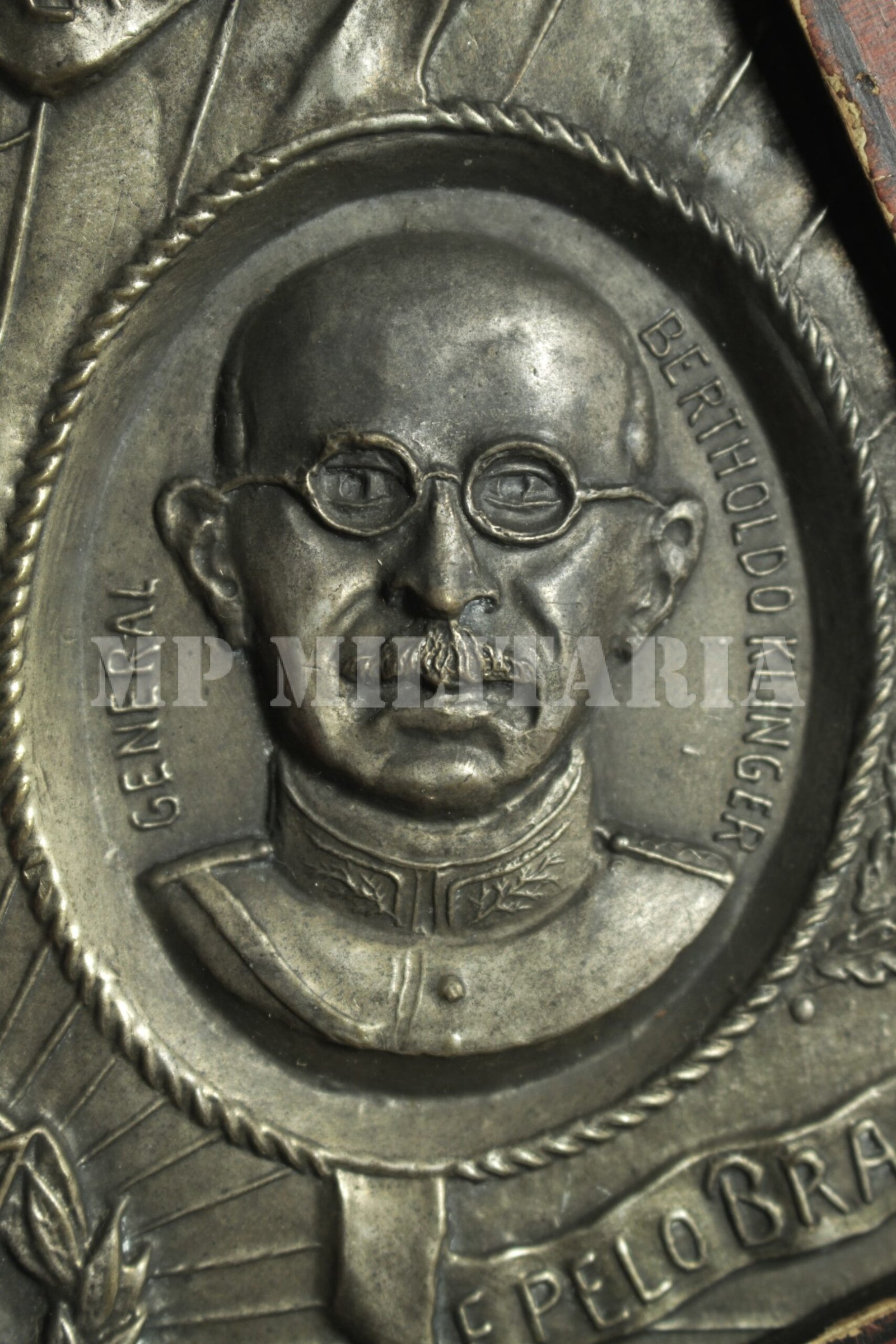RARÍSSIMO QUADRO DE METAL ESTAMPADO DA CRUZ VERMELHA, COM AS EFÍGIES DOS COMANDANTES – REVOLUÇÃO DE 1932
