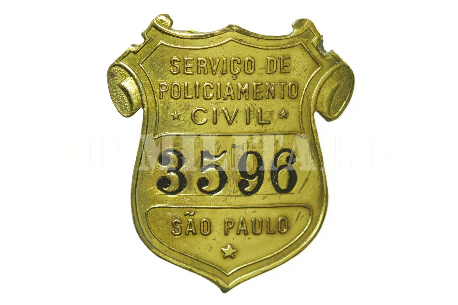 Raro distintivo do Serviço de Policiamento Civil de São Paulo – Guarda Civil. Estas insígnias eram numeradas essa é de número 3596;