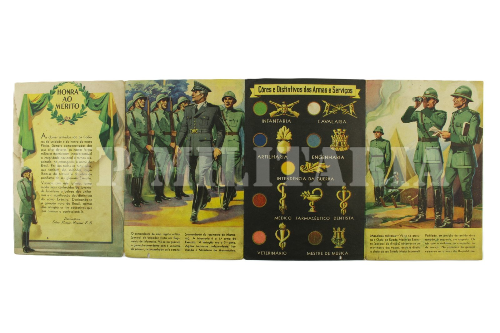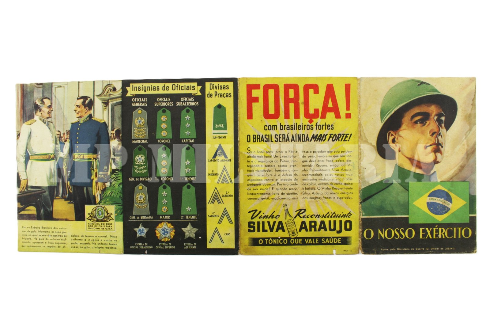 Raro encarte “O Nosso Exército” publicado em 1941, uma excelente referência de uniformes e insígnias do Exército durante o período da II Guerra Mundial;