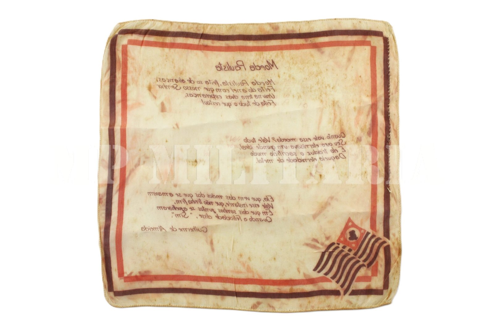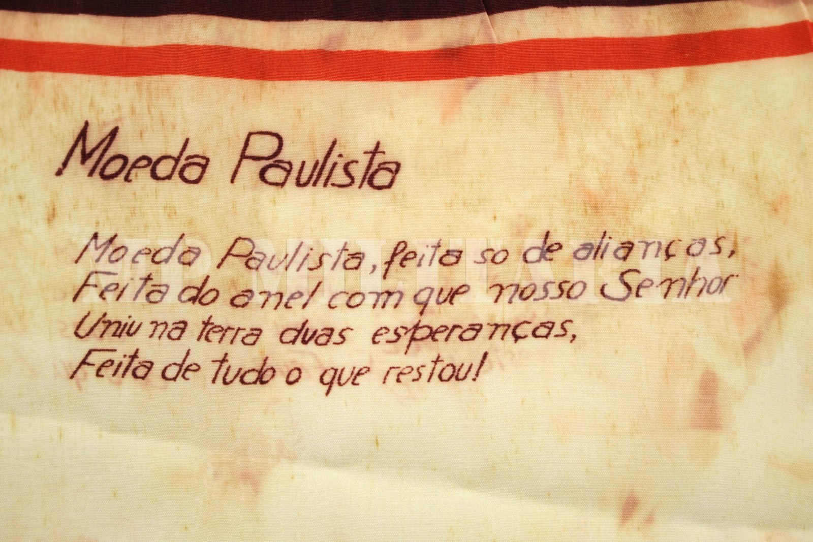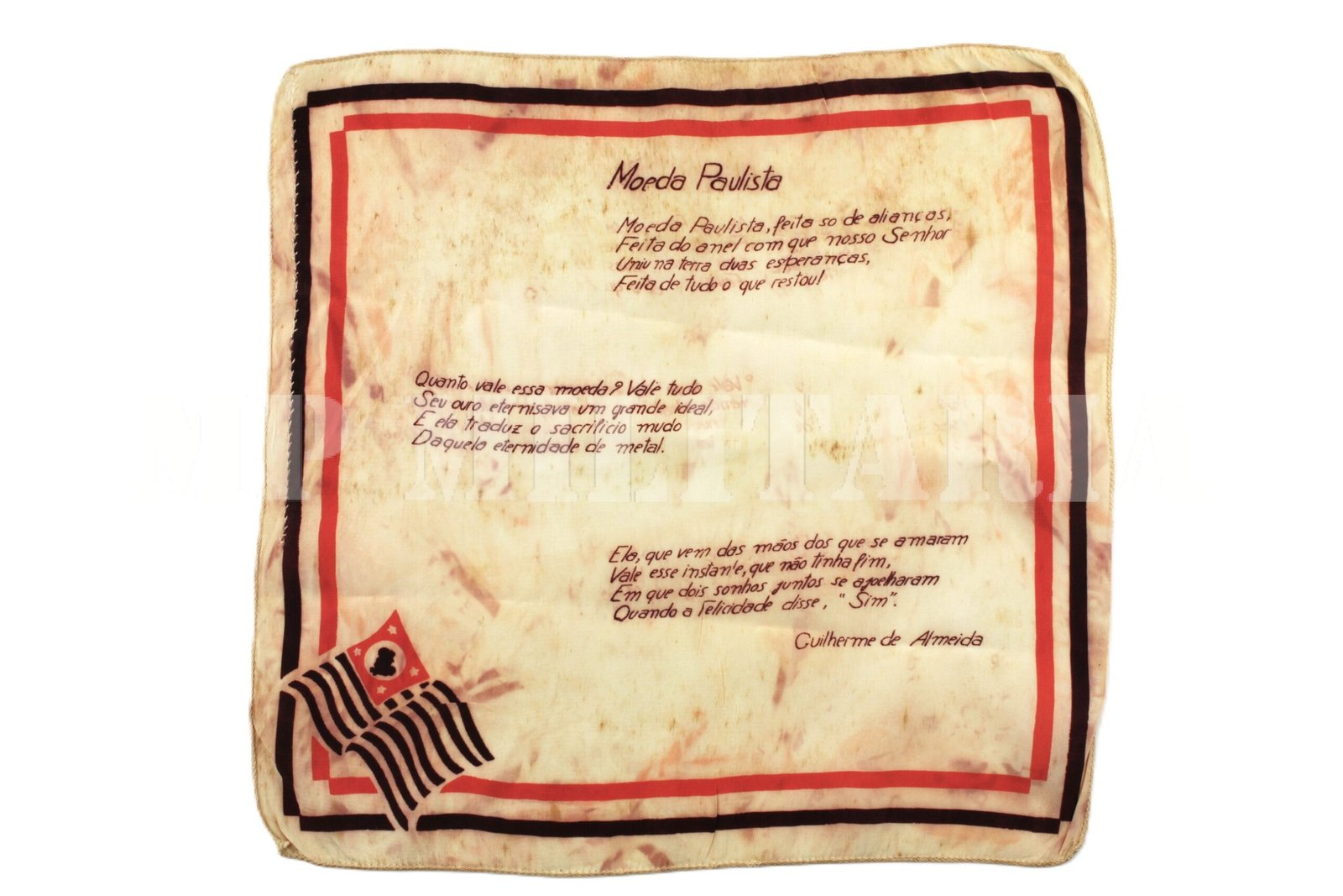 RARO LENÇO COM O POEMA: MOEDA PAULISTA – REVOLUÇÃO DE 1932