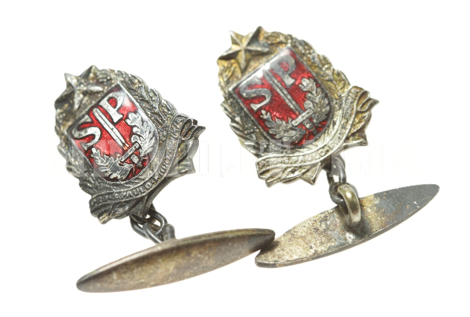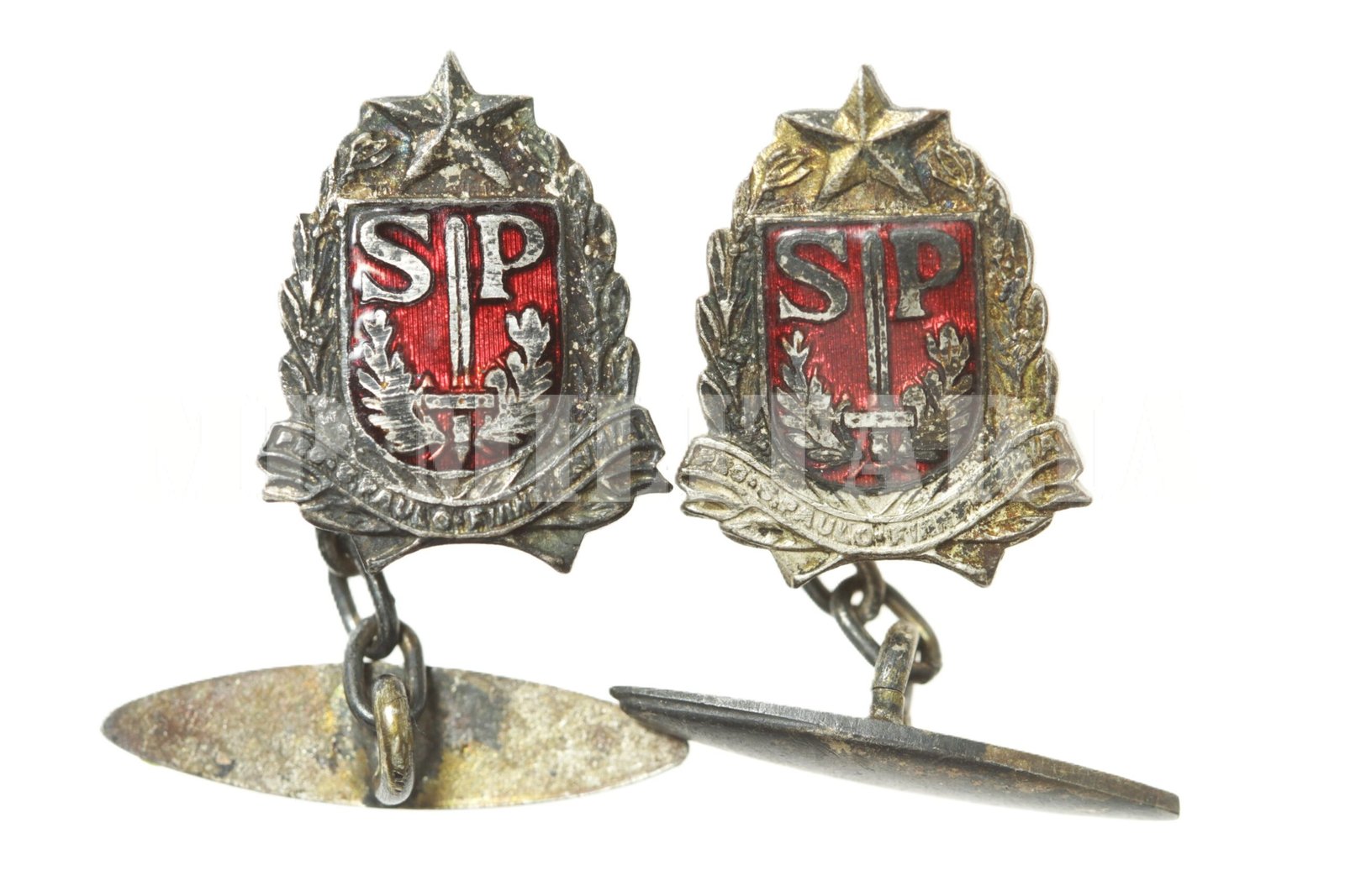 Abotoadura Brasão estado de São Paulo esmaltado, com a inscrição “Pro-S. Paulo Fiant Eximia”, feito durante a Revolução Constitucionalista de 1932;