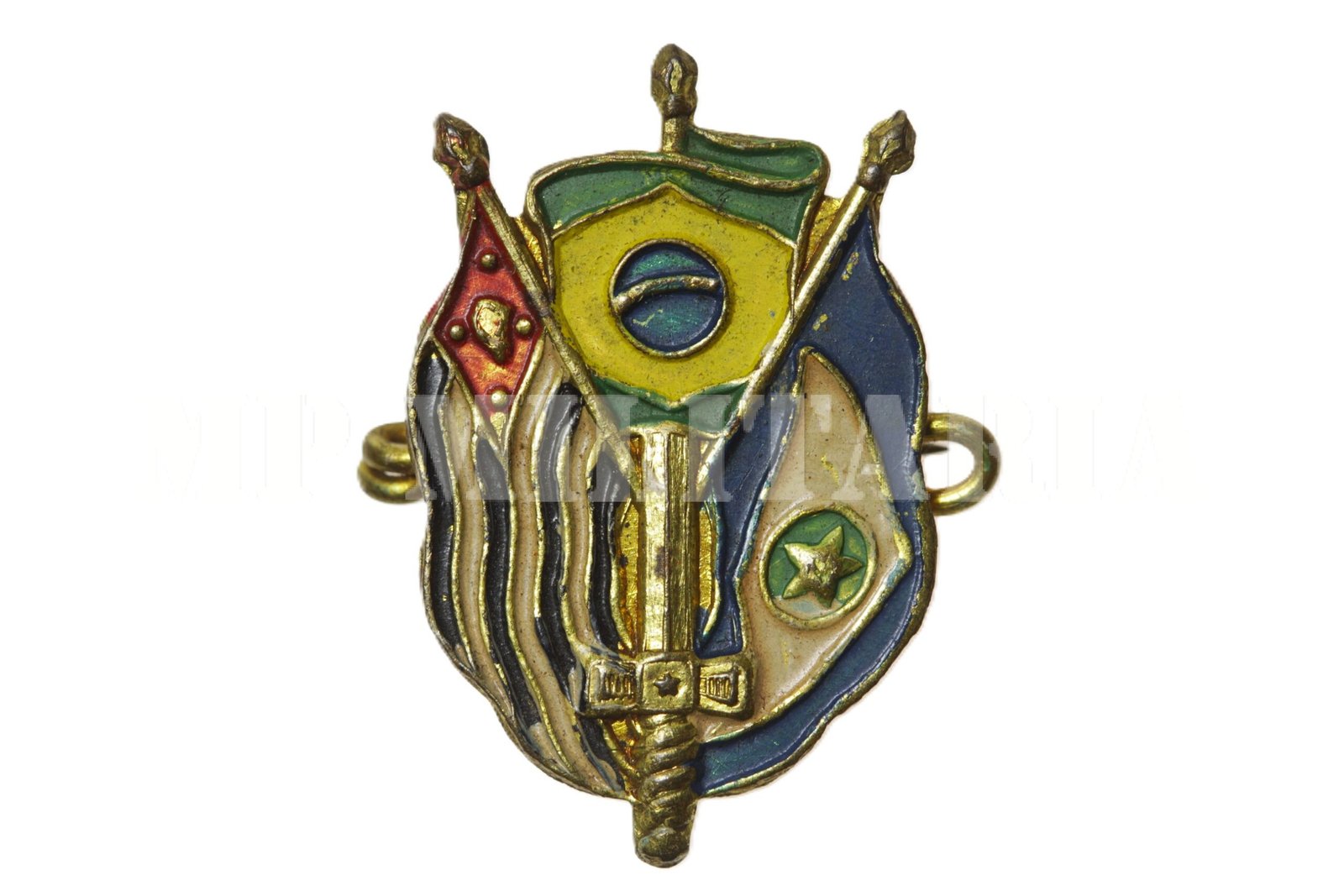 Raro pin descrito no Álbum Paulista como “Bandeiras S. Paulo, Brasil e Mato Grosso”, feito durante a Revolução Constitucionalista de 1932;