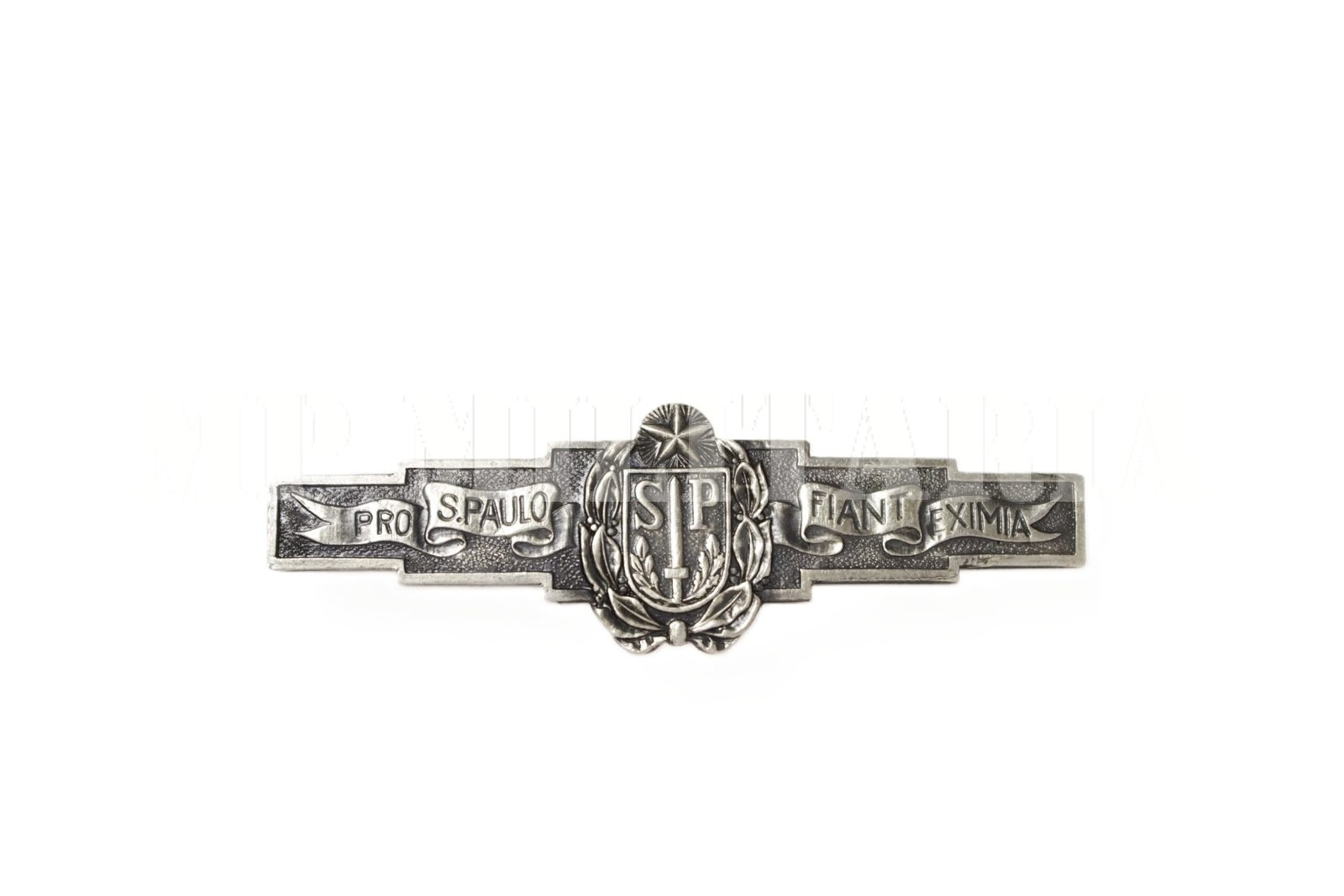 Raro distintivo em prata, descrito no Álbum Paulista como “Broche Pro S. Paulo Fiant Eximia”, feito durante a Revolução Constitucionalista de 1932;
