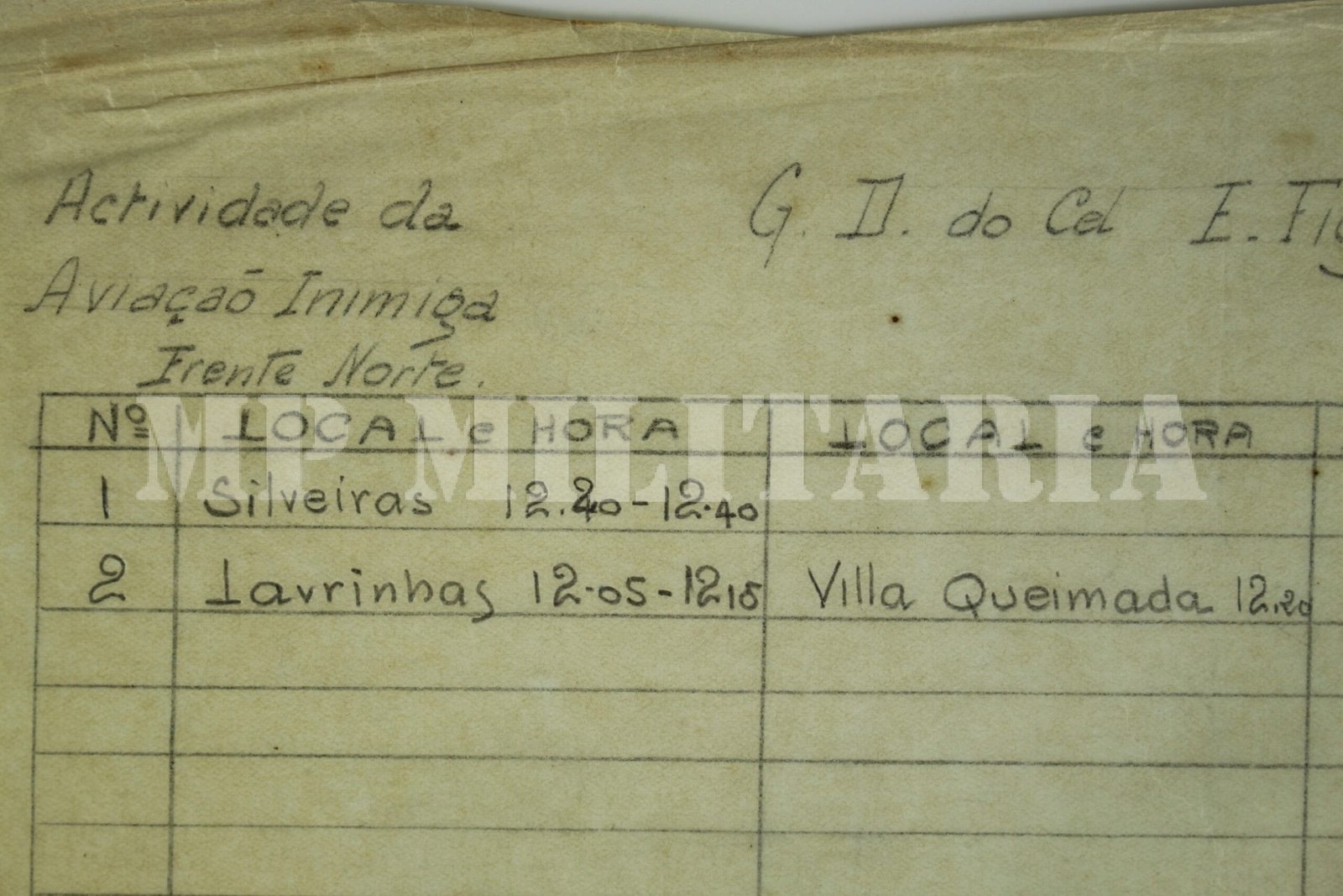Relatório da Atividade da Aviação Inimiga do G.D. do Coronel Euclydes Figueiredo, Quartel General de Cachoeira (SP), emitido em 25/08/1932, pela Defesa Antiaérea da Frente Norte, durante a Revolução Constitucionalista de 1932;